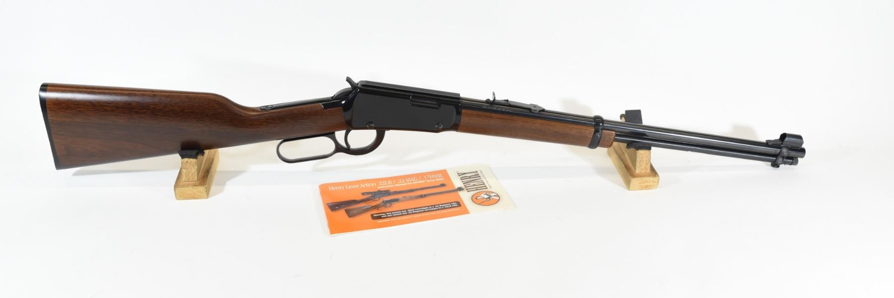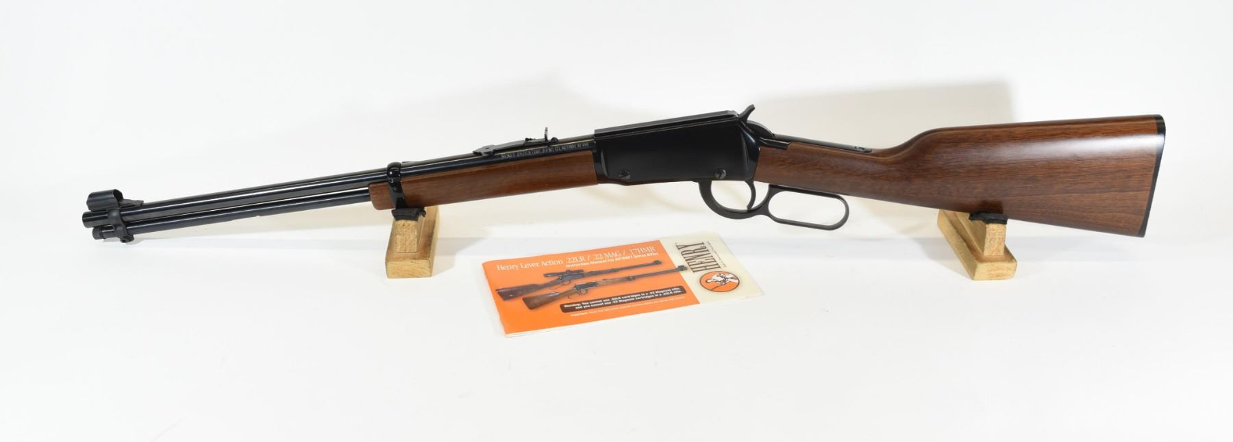 Non-restricted, lever action, .22 cal s-l-lr, 18" barrel, SN 582016H. Wood is very good, bluing is very good, bore is excellent.