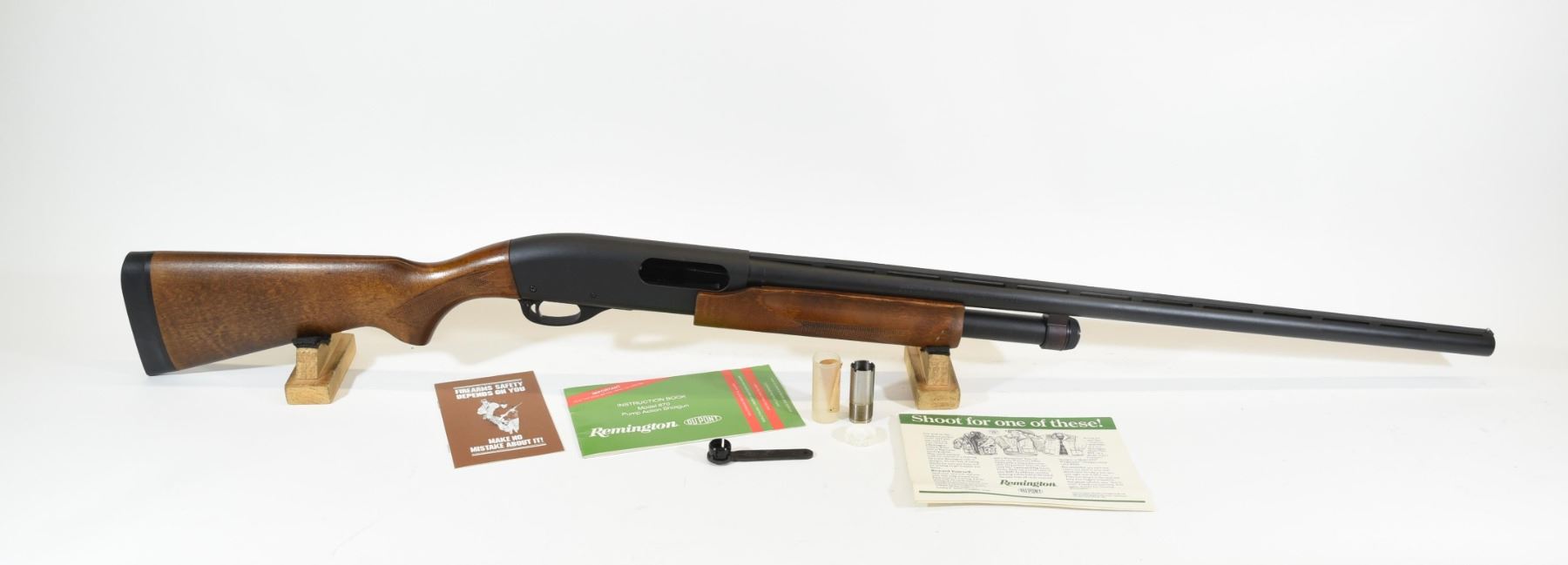 Non-restricted, pump action, 12 ga. 3", 28" vent rib barrel with mod. & imp. cyl. choke tubes, SN A059905M. Wood is very good with just a couple of light marks, bluing is very good, bore is very good. Comes with choke wrench and manual.