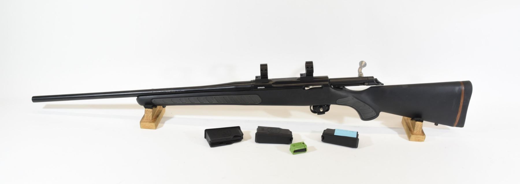 Non-restricted, bolt action, .308 win., 22" barrel, SN U090634. Synthetic stock in good condition, bluing is good, bore is excellent. Comes with 3 mags and 1" Tilley scope rings.