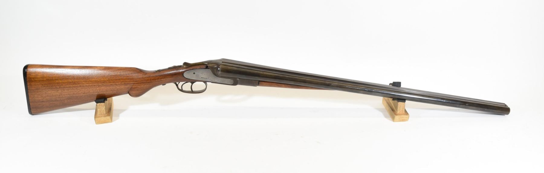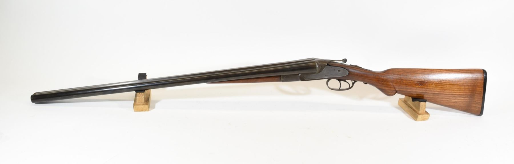 Non-restricted, multi barrel, 12 ga. 2 3/4", 28" cyl. choke barrels, SN 44116. Wood is very good other than a chip out behind receiver and has been refinished, bluing is smooth and starting to turn brown in some areas, bores are good.