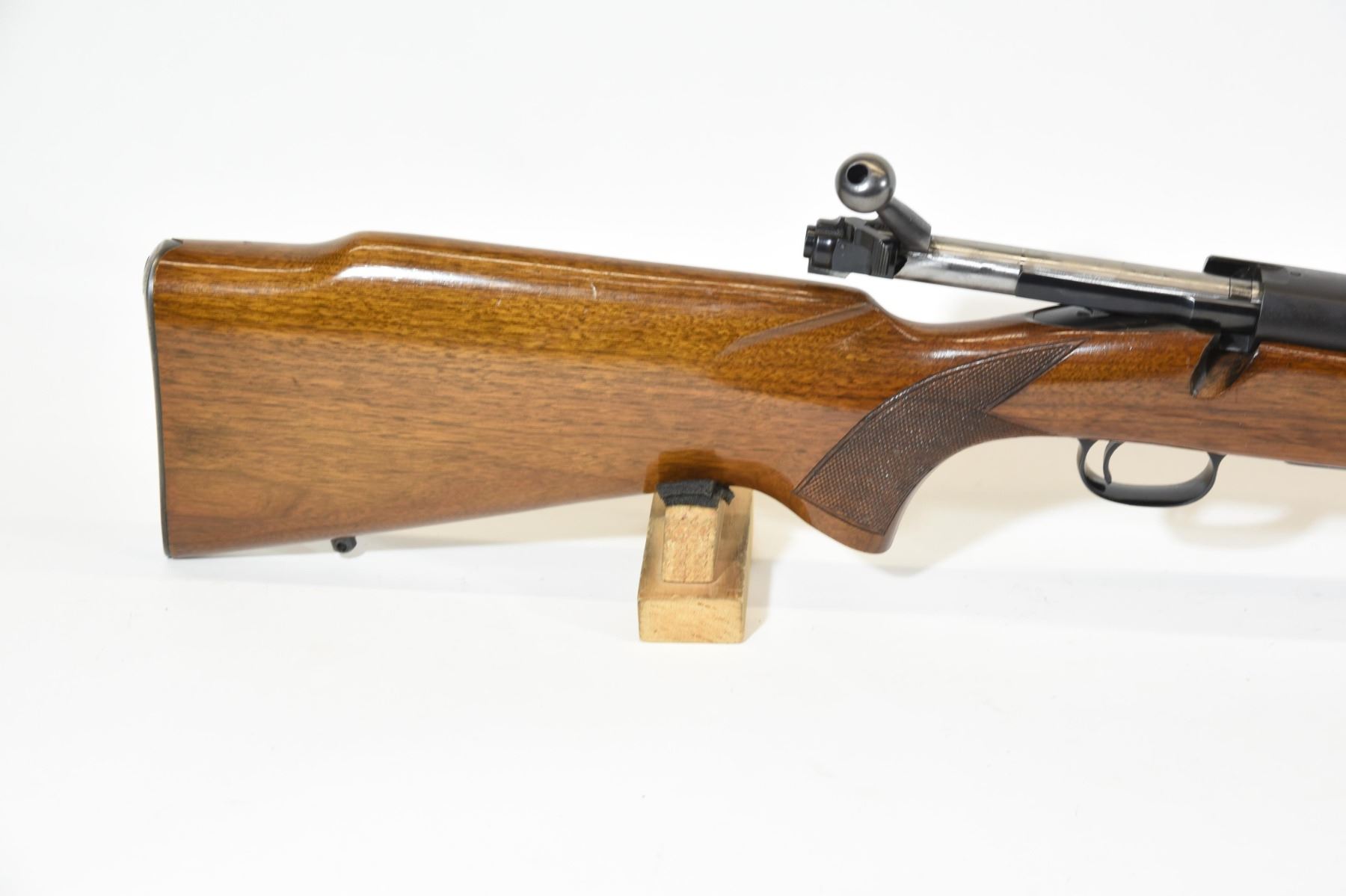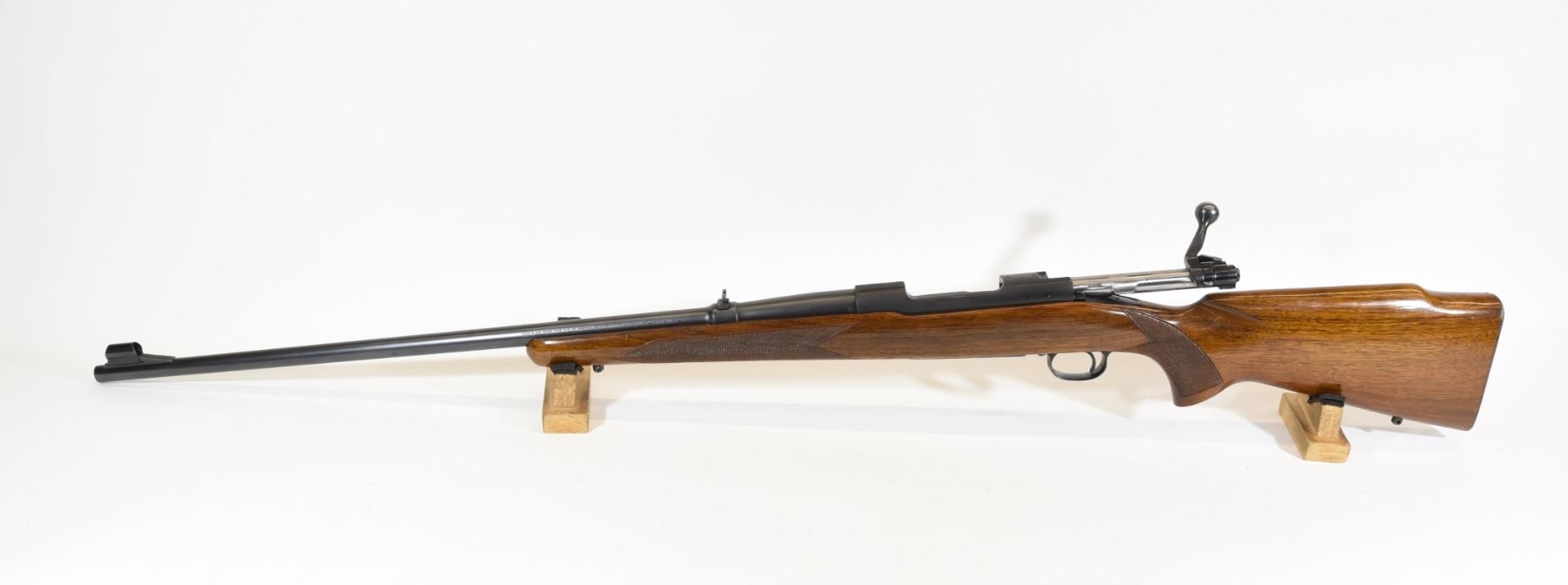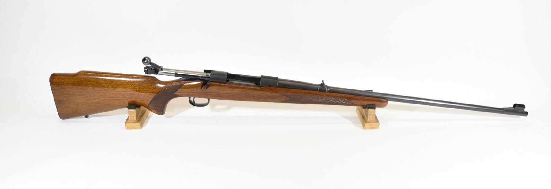Non-restricted, bolt action, .220 swift, 26" barrel, SN 291945. Wood is good with some light handling marks, bluing very good, bore is excellent.