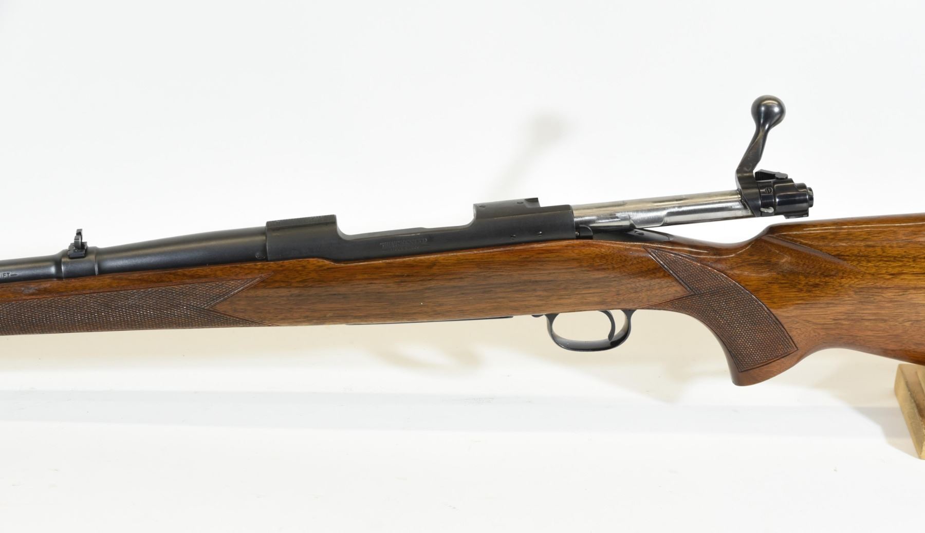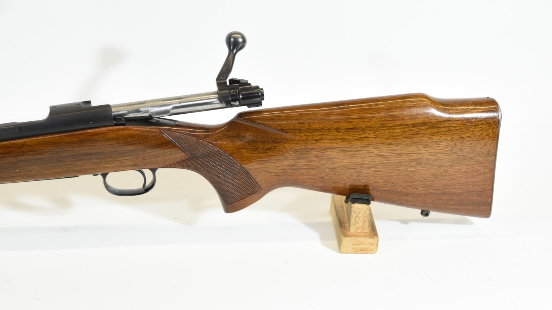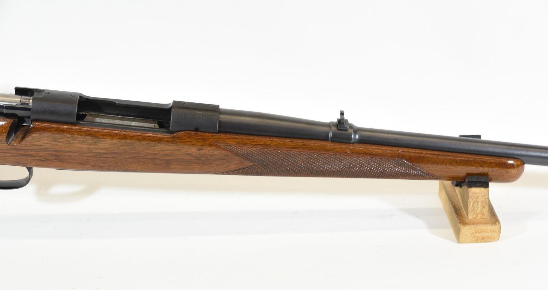 Non-restricted, bolt action, .220 swift, 26" barrel, SN 291945. Wood is good with some light handling marks, bluing very good, bore is excellent.