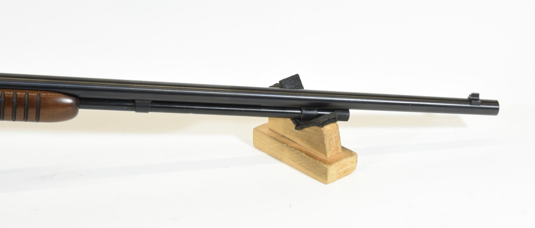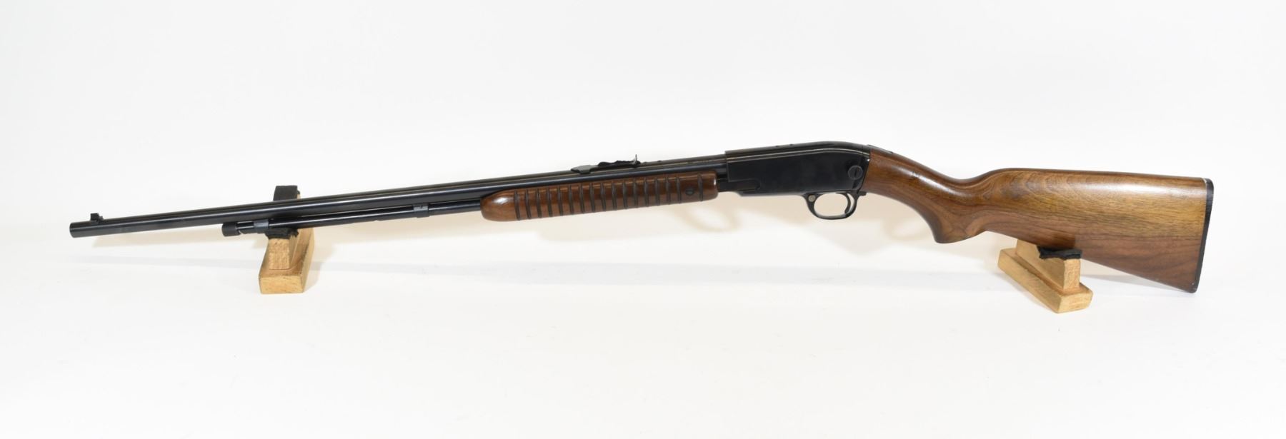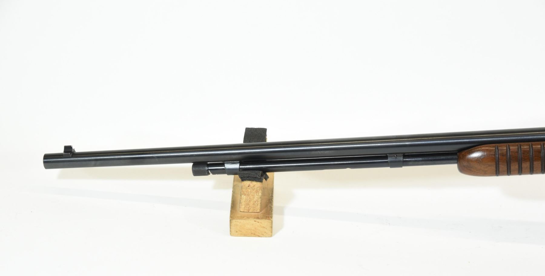Non-restricted, pump action, .22 s-l-lr, 24" barrel, SN 340138. Wood has just a few light marks, bluing is very good, bore is excellent.