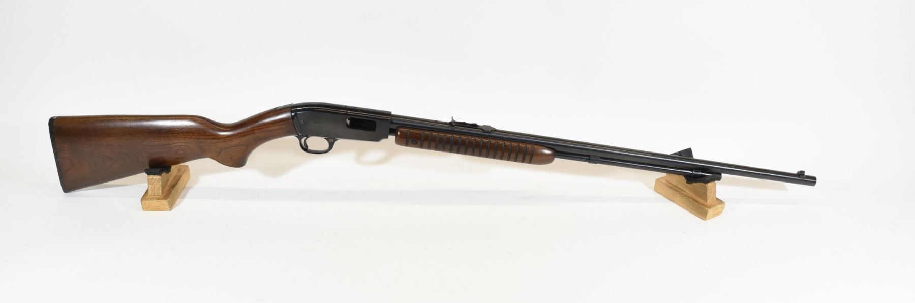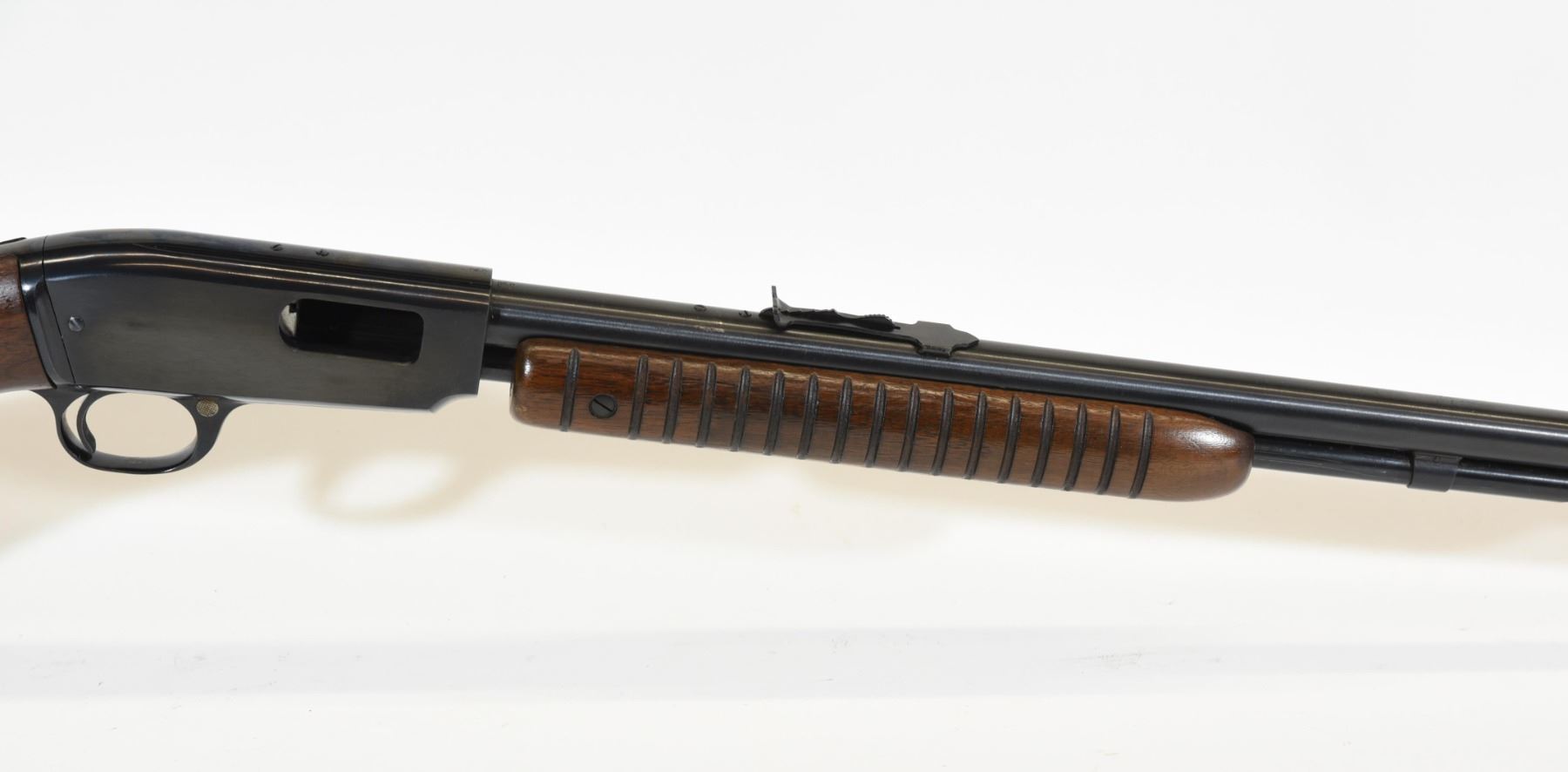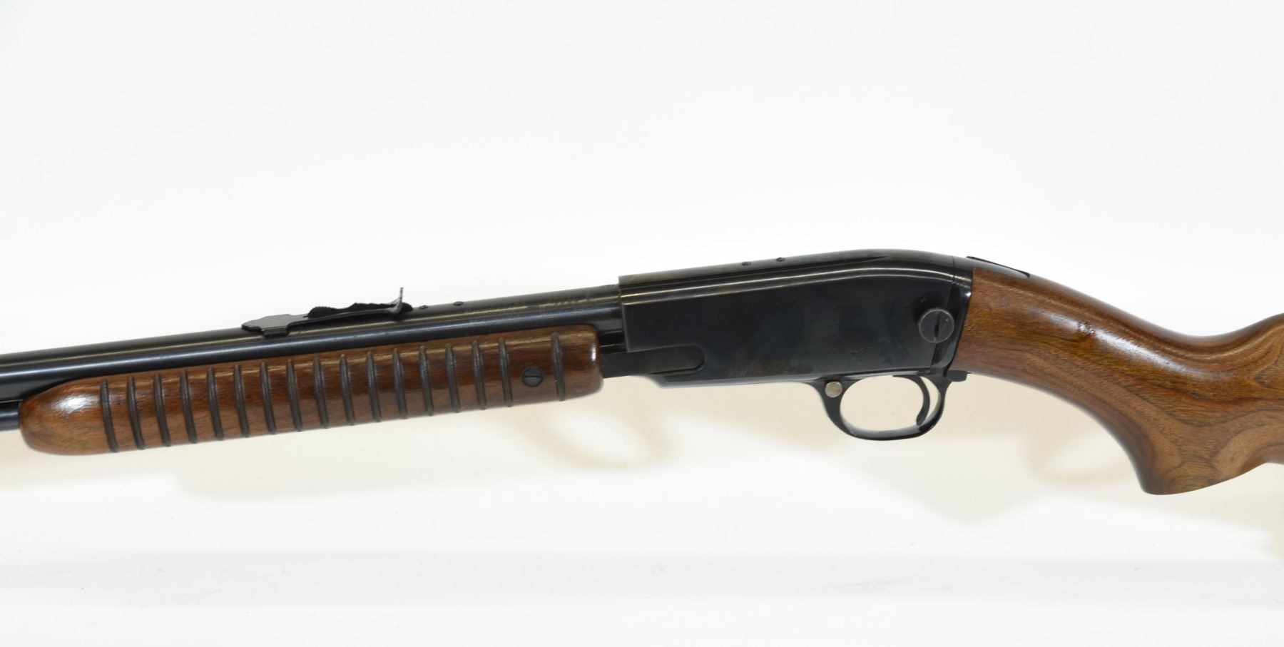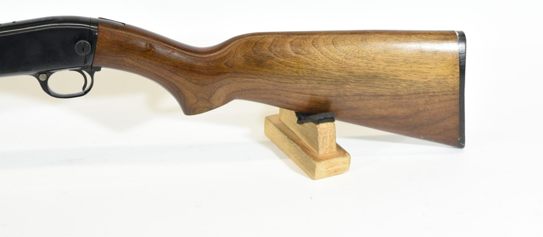 Non-restricted, pump action, .22 s-l-lr, 24" barrel, SN 340138. Wood has just a few light marks, bluing is very good, bore is excellent.