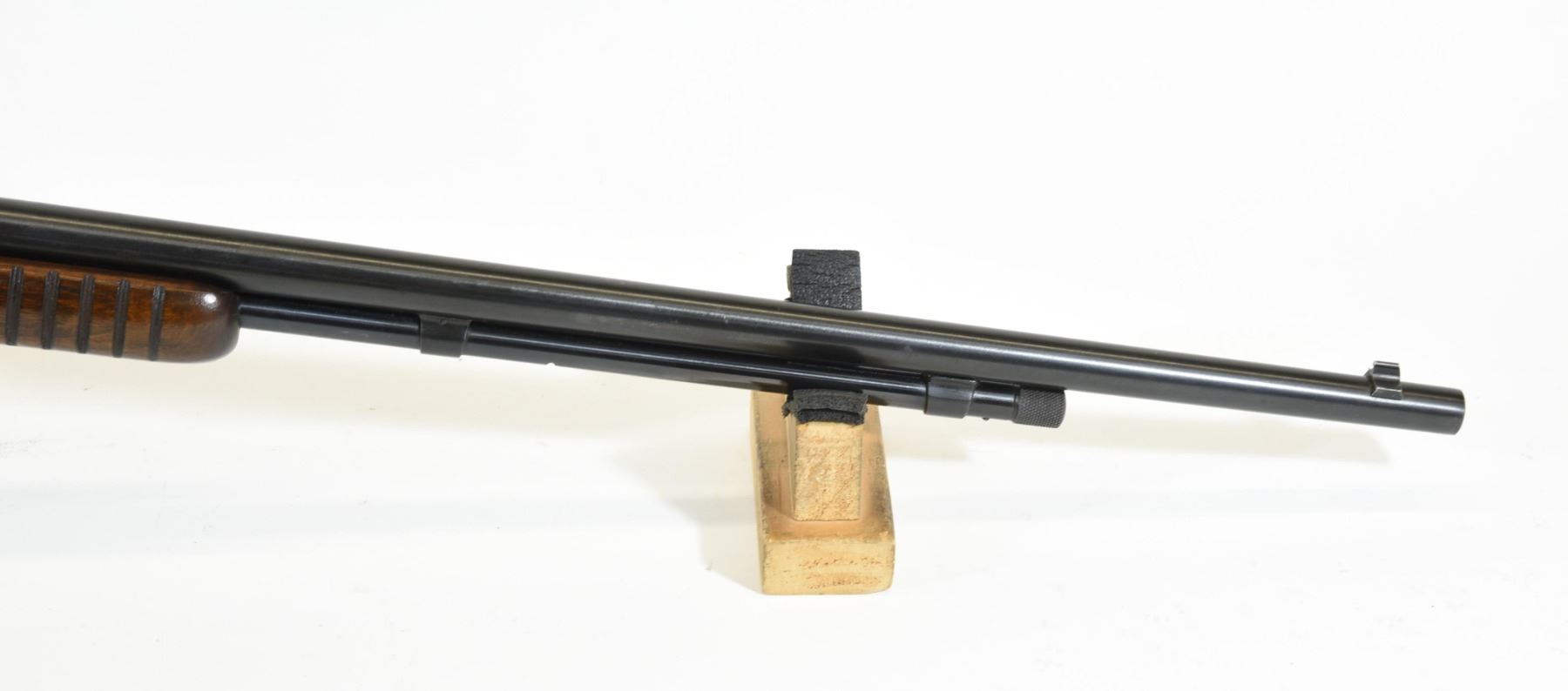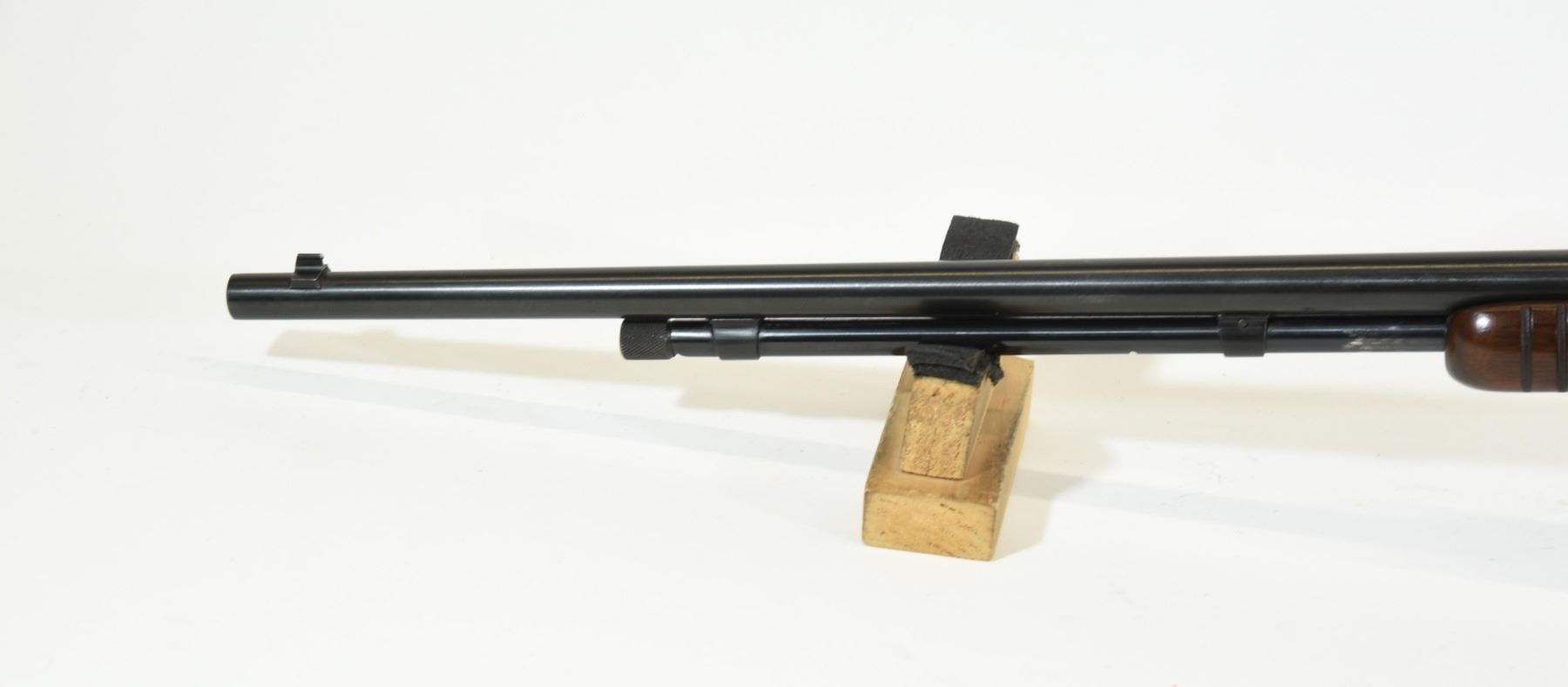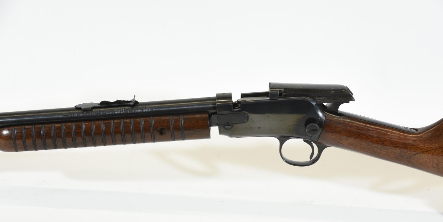 Non-restricted, pump action, .22 s-l-lr, 23" barrel, SN 326233. Wood is very good, bluing is very good, bore is excellent.