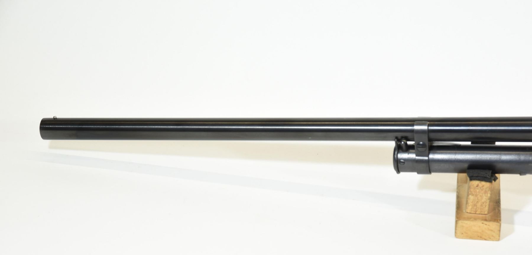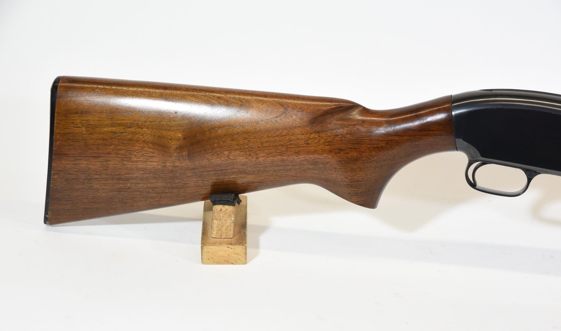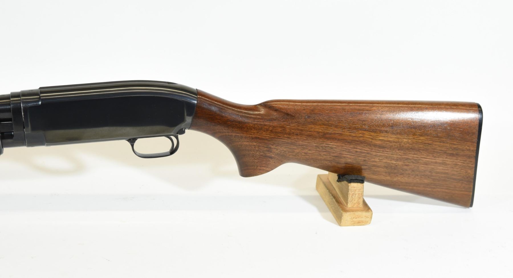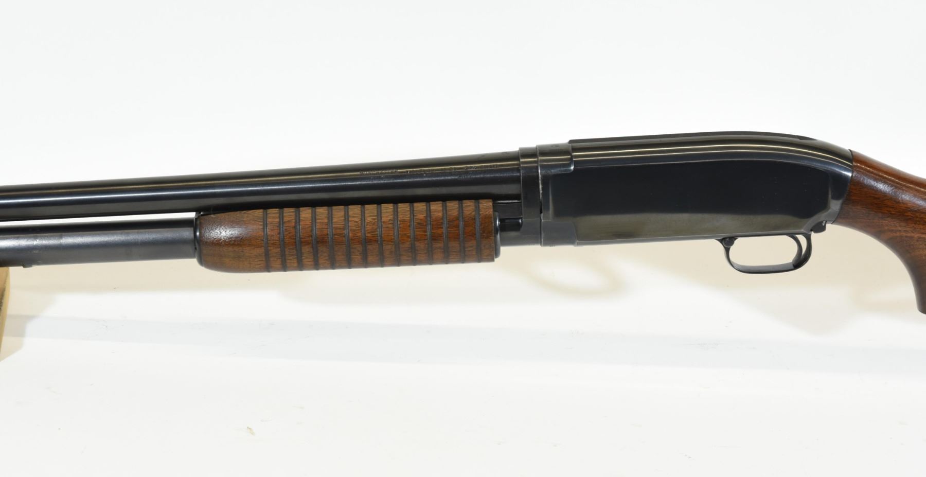 Non-restricted, pump action, 12 ga. 2 3/4", 30" full choke barrel, SN 1486449. Wood is good but has a few light dents and scratches, bluing is very good, bore is very good.