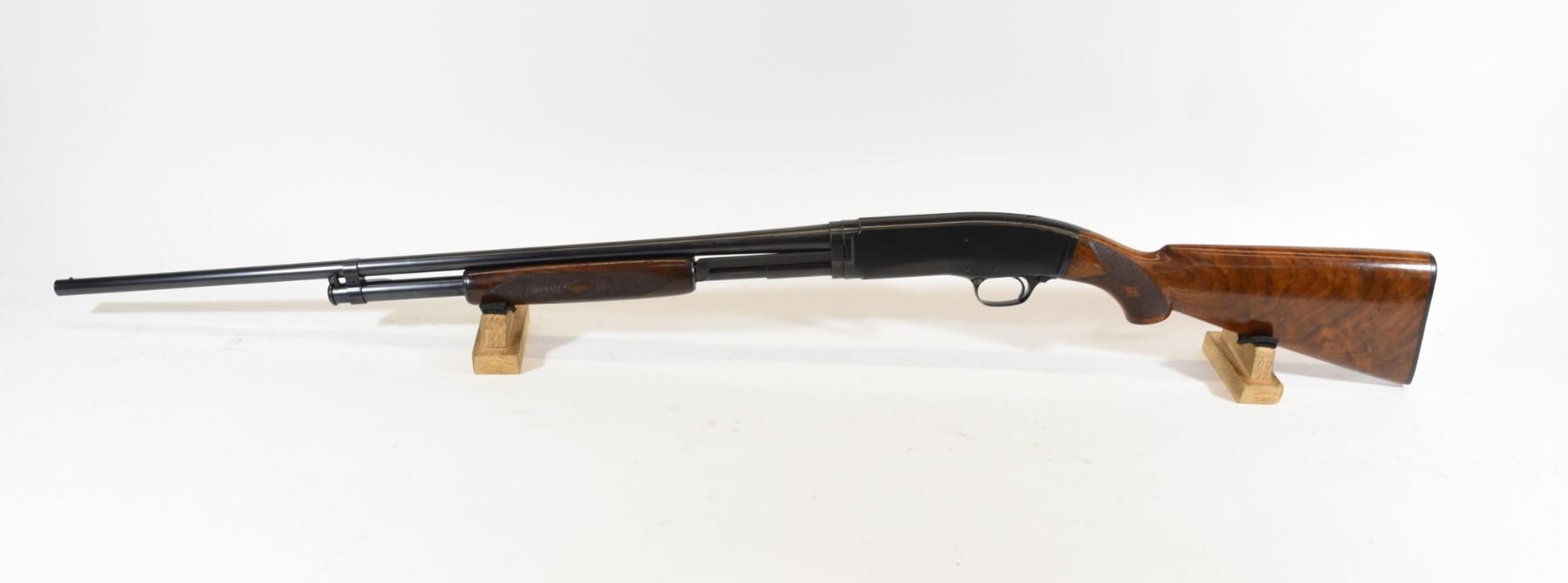 Non-restricted, pump action, 410ga , 26" barrel full choke, SN 23310. Wood is good with some dents, bluing is good with wear on receiver, bore is very good.1 of 240 manufactured. Rare.