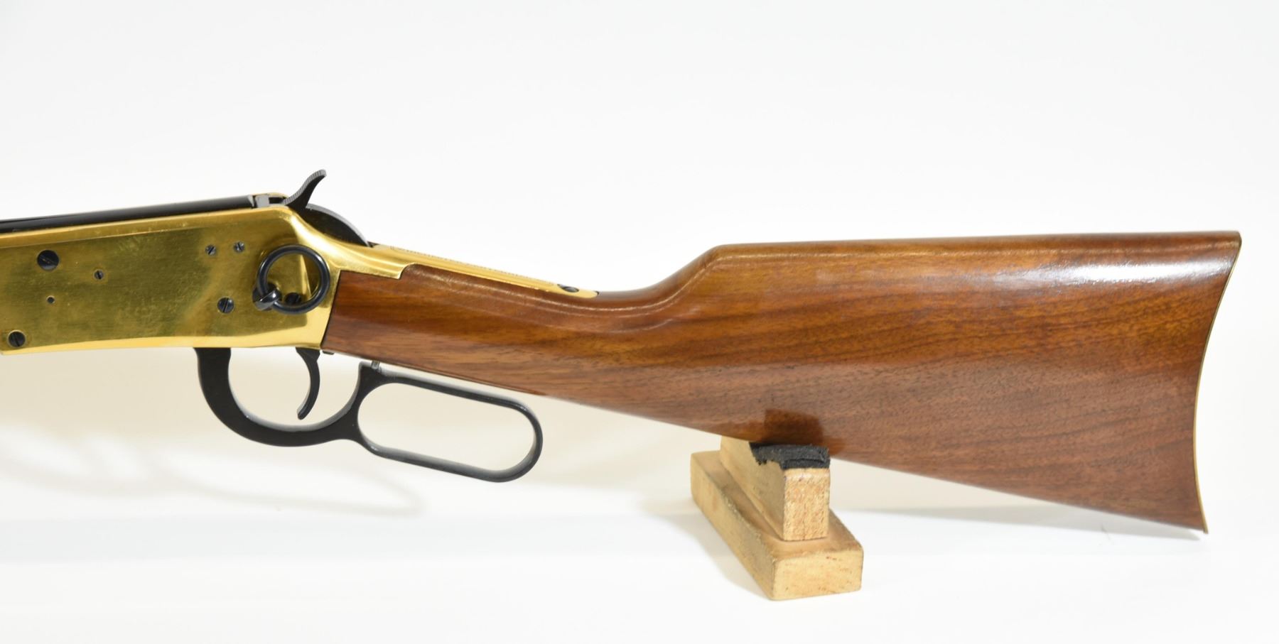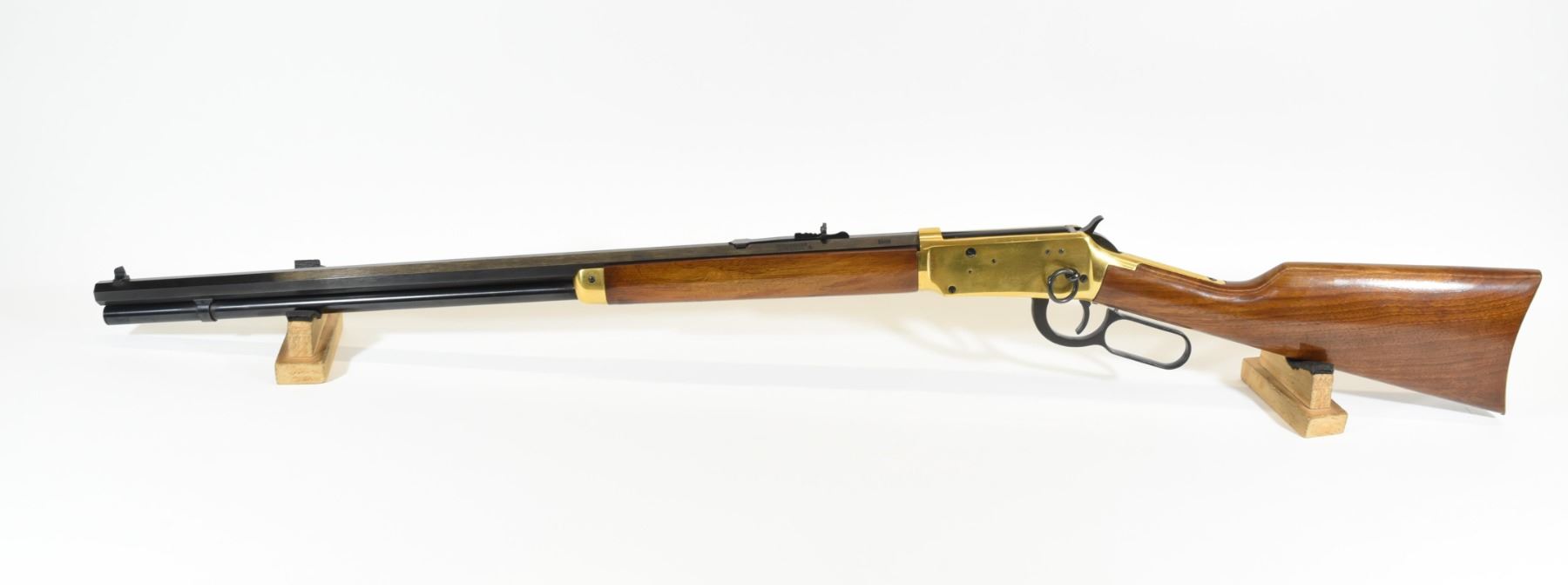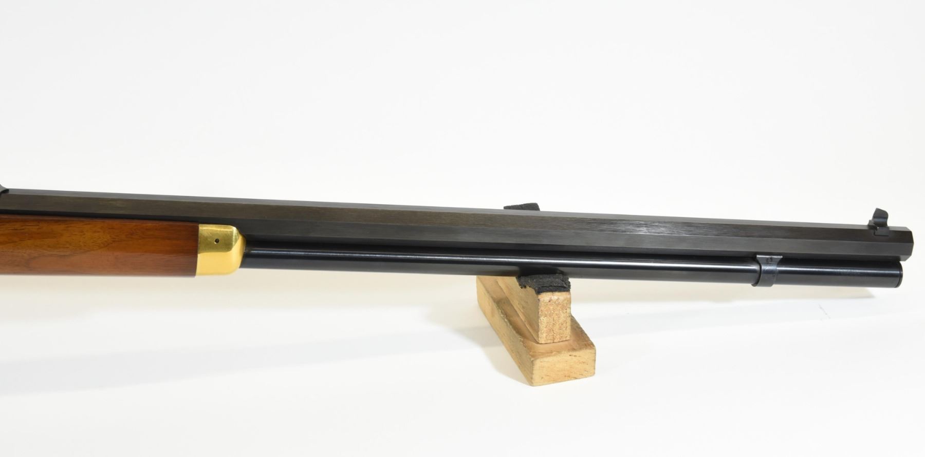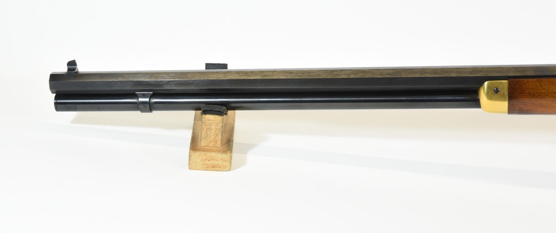 Non-restricted, lever action, 30-30 Win, 26" octagonal barrel, SN 36607. Wood finish at toe is flaking, brass finish on receiver has light pitting, bore excellent.