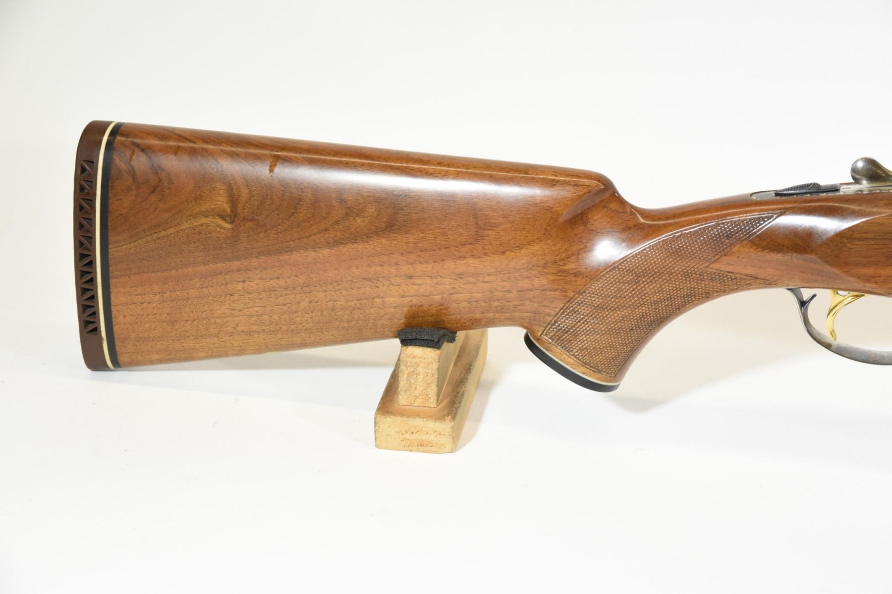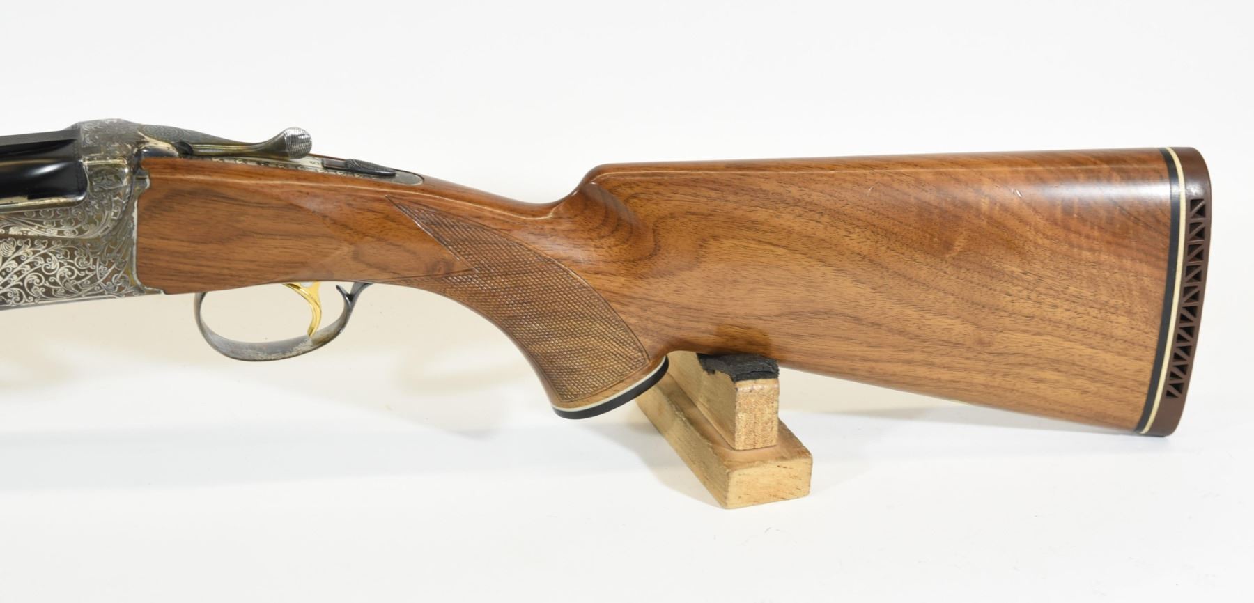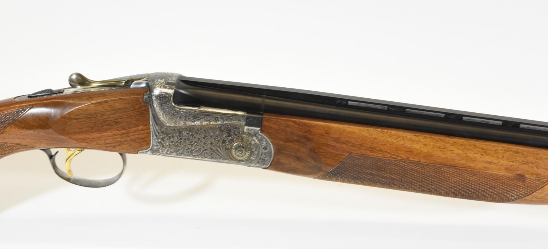 Non-restricted, multi barrel, 12Ga x 2 3/4", 26" vent rib barrels with fixed chokes (skt, skt), SN 55638241. Wood excellent, bluing very good, receiver finish tarnished, bores excellent. Original box.