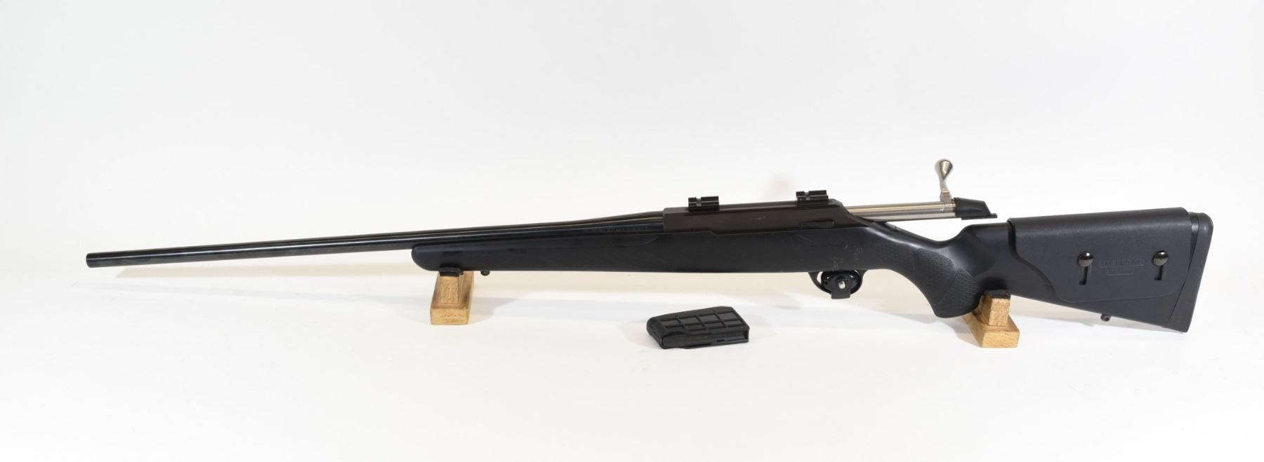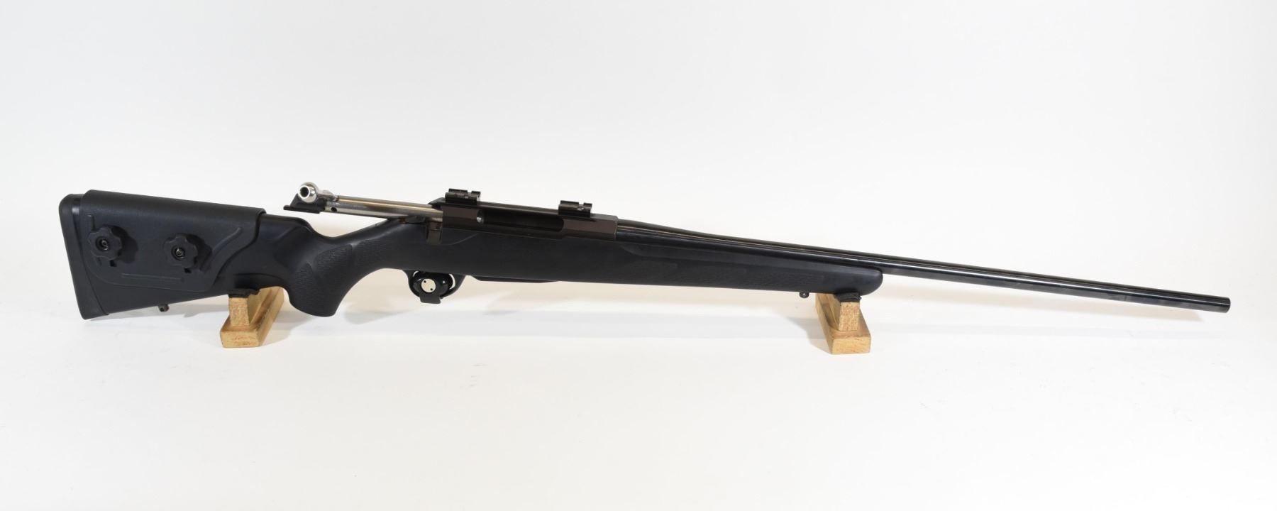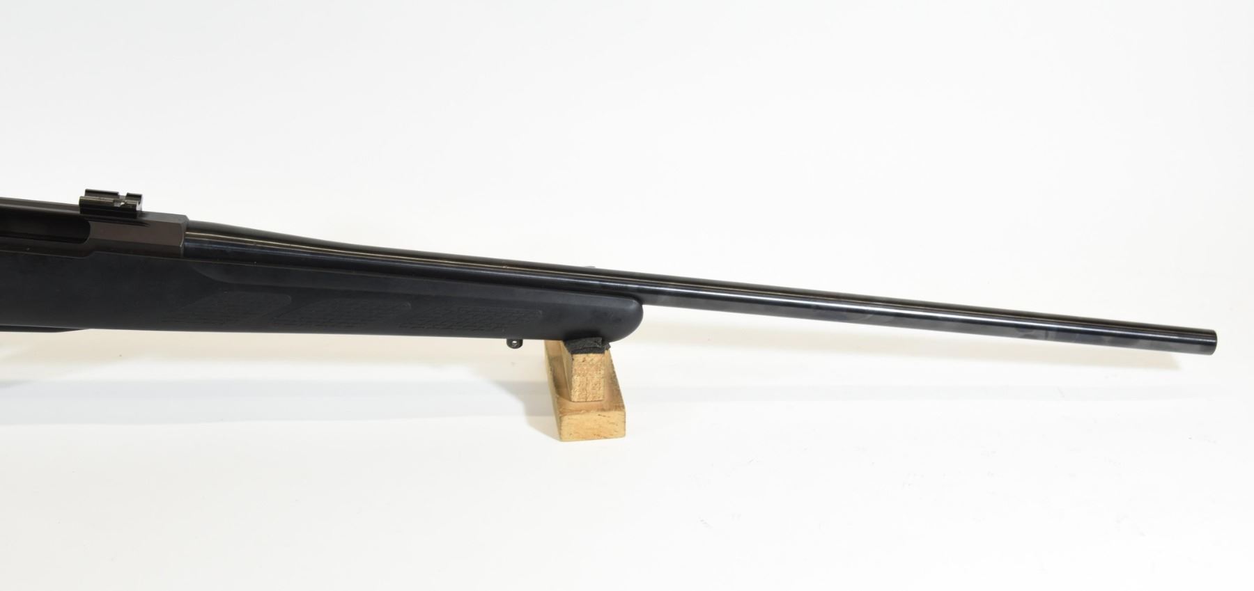 Non-restricted, bolt action, 300 Win Mag, 24" barrel, SN D72437. Synthetic stock and bluing have a few marks, bore excellent.