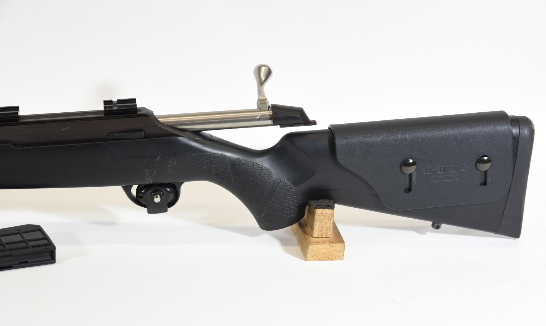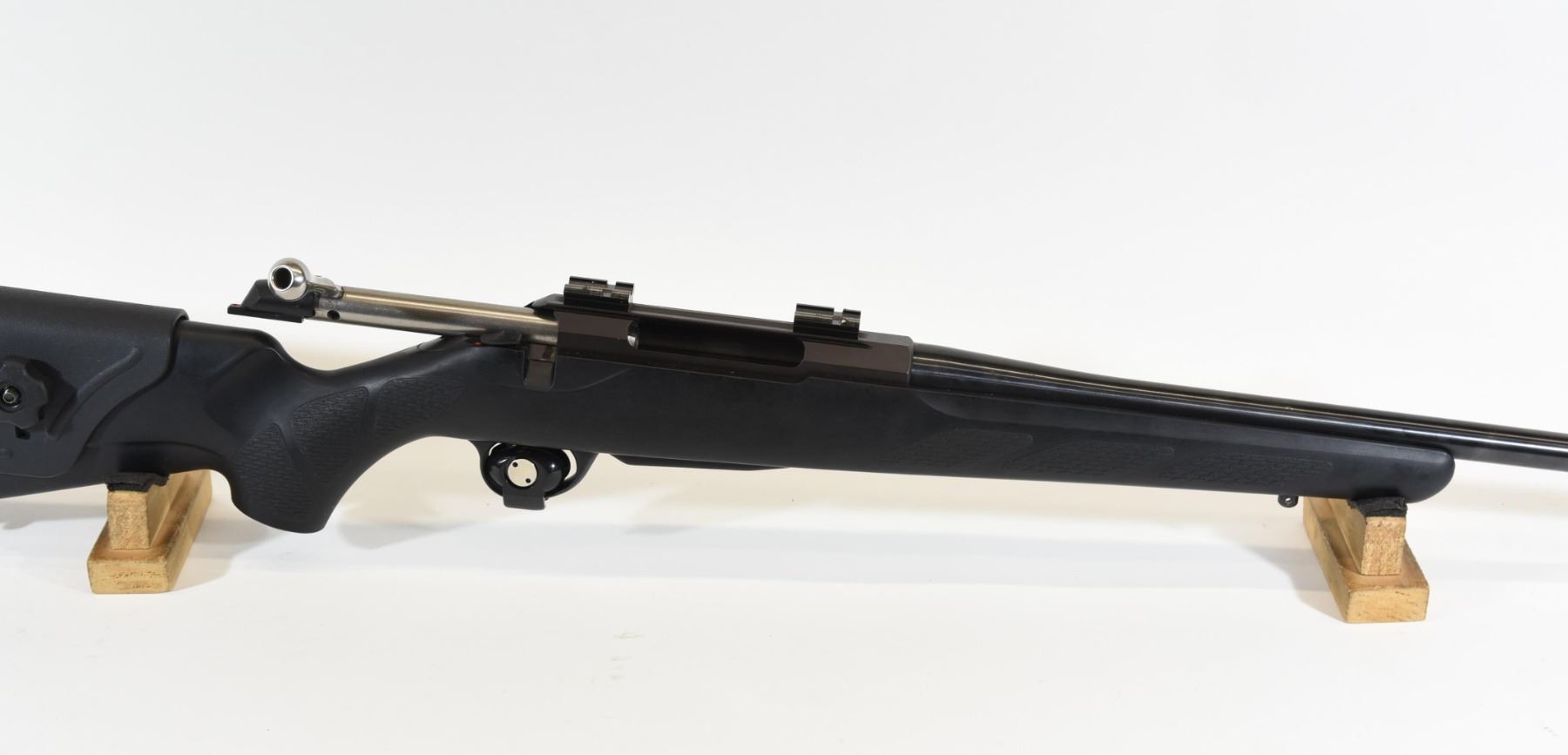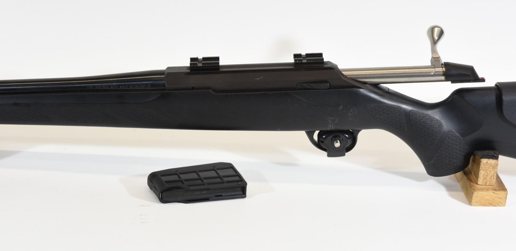 Non-restricted, bolt action, 300 Win Mag, 24" barrel, SN D72437. Synthetic stock and bluing have a few marks, bore excellent.