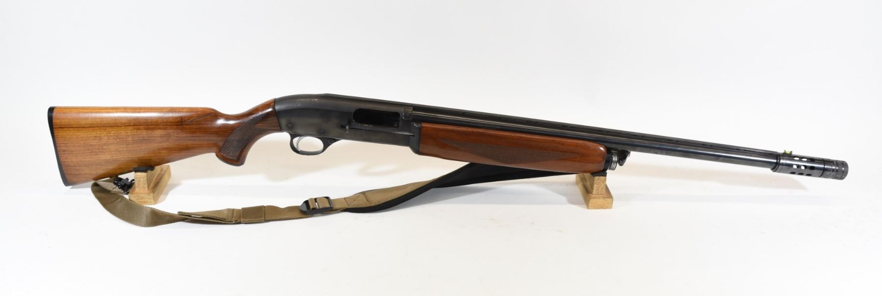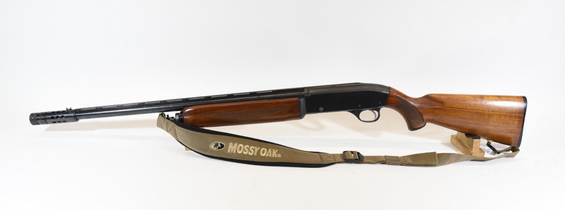 Non-restricted, semi auto, 12 ga. 2 3/4", 26" vent rib barrel with a dial-a-choke. Wood is good, bluing is fair with scratches, bore is good. Has a Mossy Oak sling.