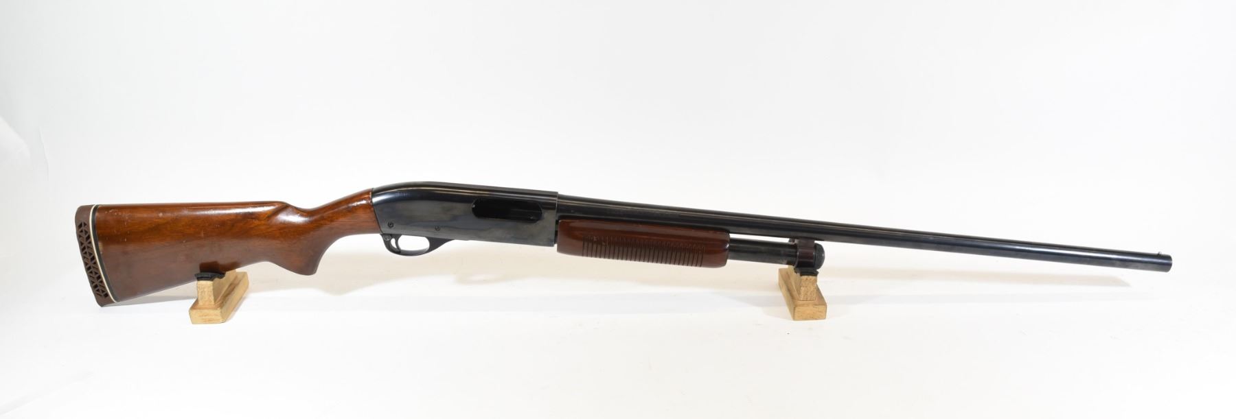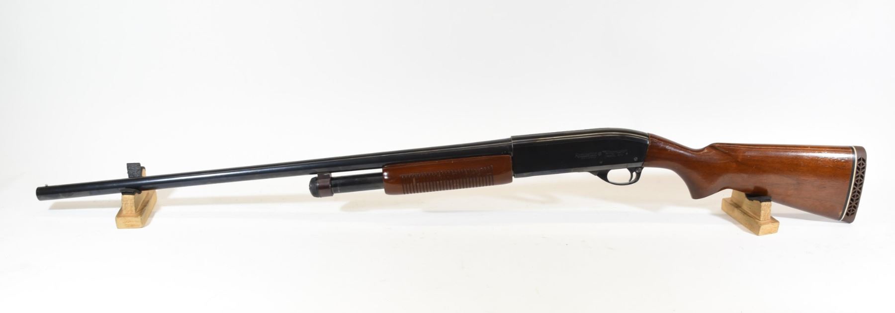Non-restricted, pump action, 12 ga. 2 3/4", 28" mod. choked barrel, SN S071644V. Wood is good with some light marks, bluing is good, bore is good.