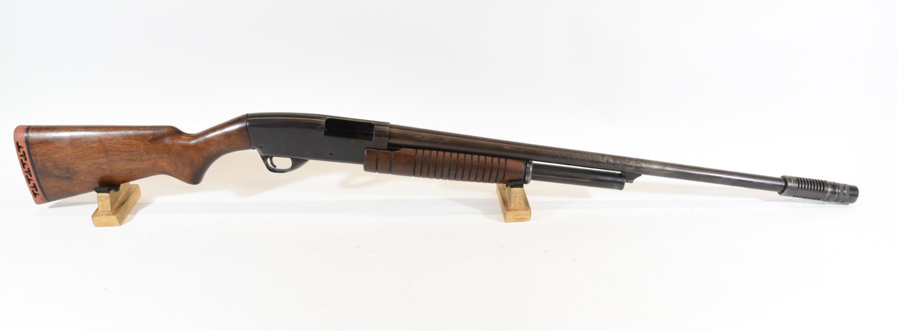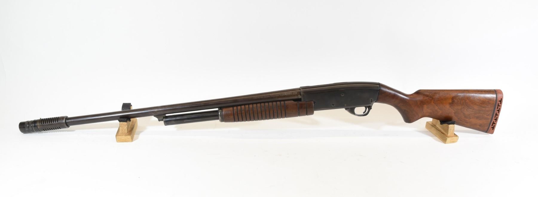 Non-restricted, pump action, 12Ga 2 3/4", 27" barrel with Savage super choke, SN none. Wood is good with few scratches, bluing is brown, bore is very good.