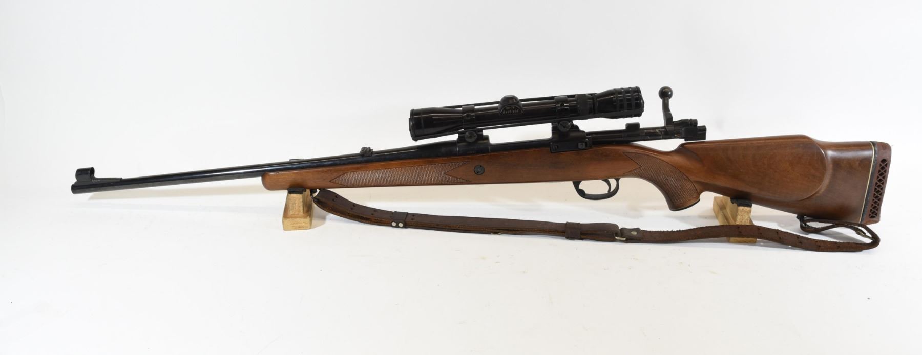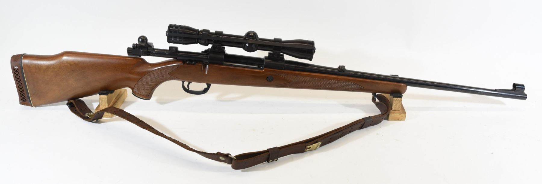 Non-restricted, bolt action, 270 win., 22" barrel SN 30266. Wood is good, bluing has very light surface rust, bore is excellent. Has a 2x-7x Redfield scope and a sling.
