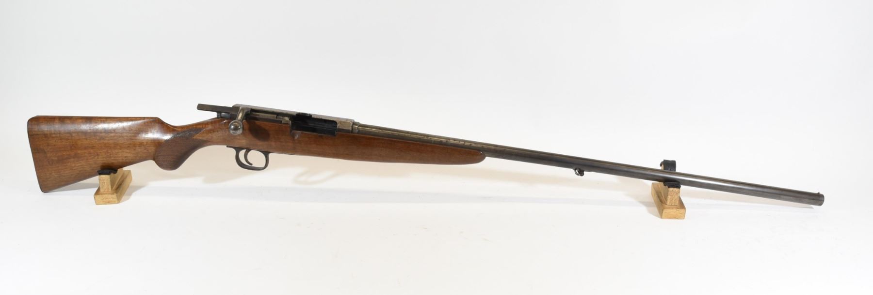 Non-restricted, bolt action 12 ga, 29" barrel, SN 2561. Stock is good, but missing 1 screw to hold action to it, bluing has worn off and show signs of rust, bore is good.
