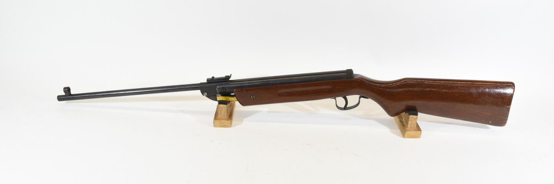 No PAL required under 500fps. air gun, break action single shot. .177 cal, SN none. Stock has marks and scratches and has 4 holes drilled for sling , bluing has rust pitting, bore is good.