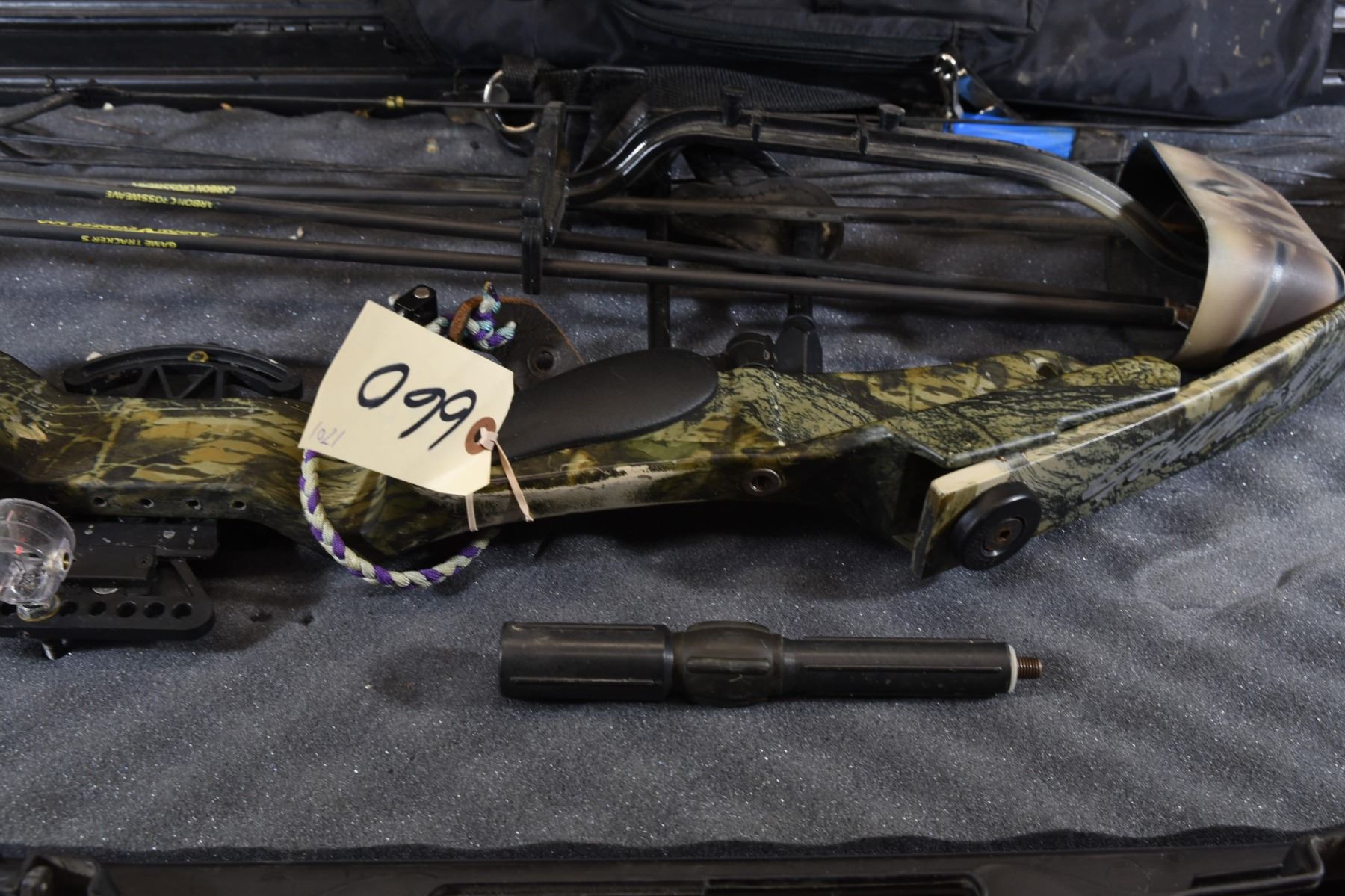 Right handed, 45-50 lbs, quiver, arrows, hard case.