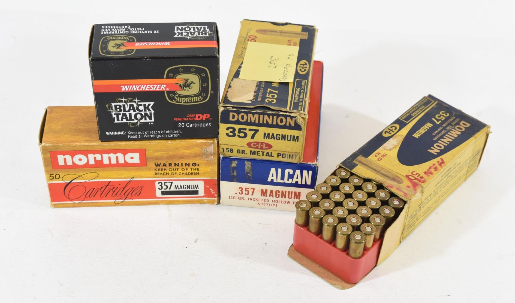 94 rnds reloads, 20 rnds Winchester Black Talon 180grn SXT, 45 rnds Norma 158grn HP, 50 rnds Alcon 110grn JHP.