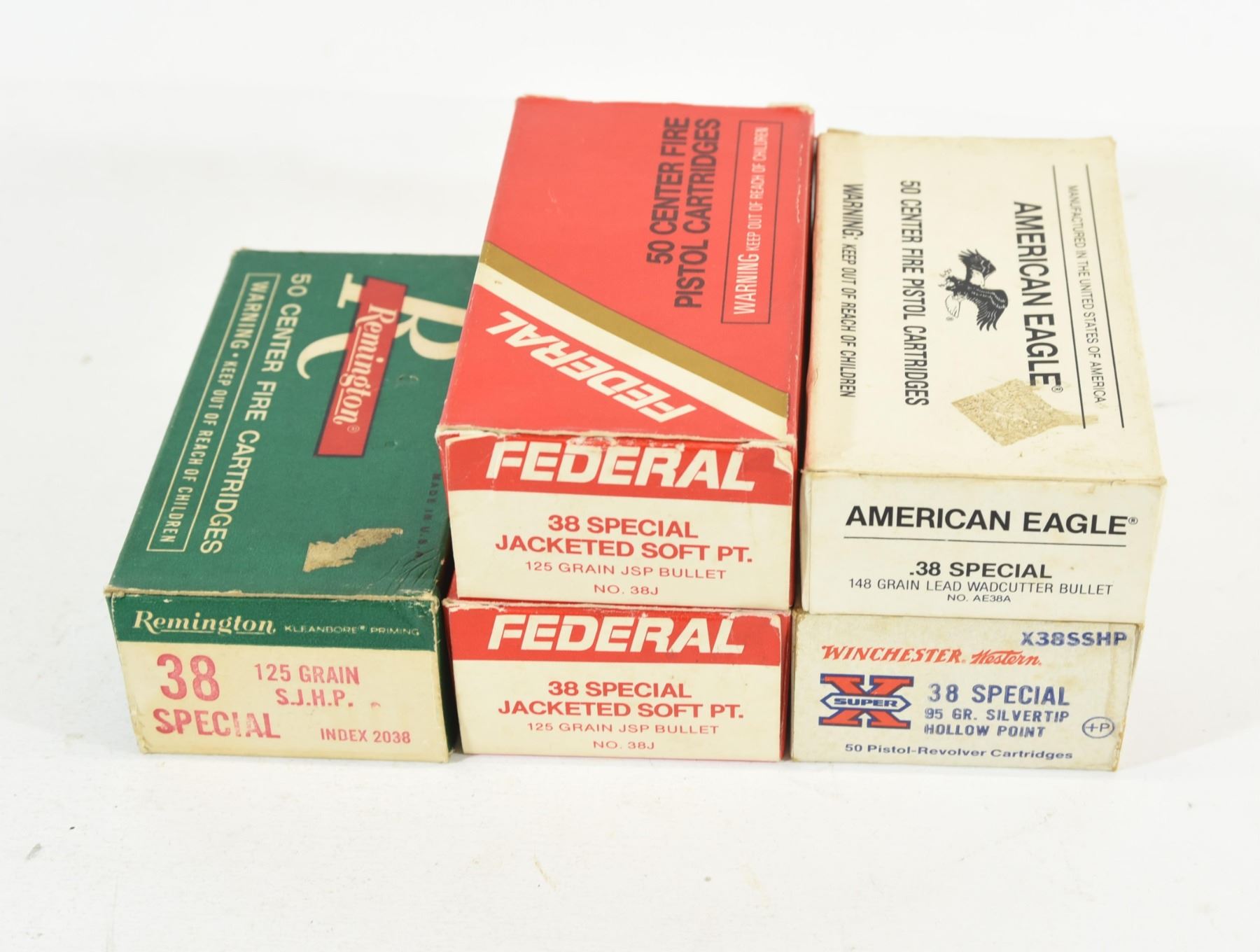 50 rnds American Eagle 148grn wadcutter, 50 rnds WInchester 95grn Silvertip HP, 100 rnds Federal 125grn JSP, 50 rnds Remington 125grn SJHP.