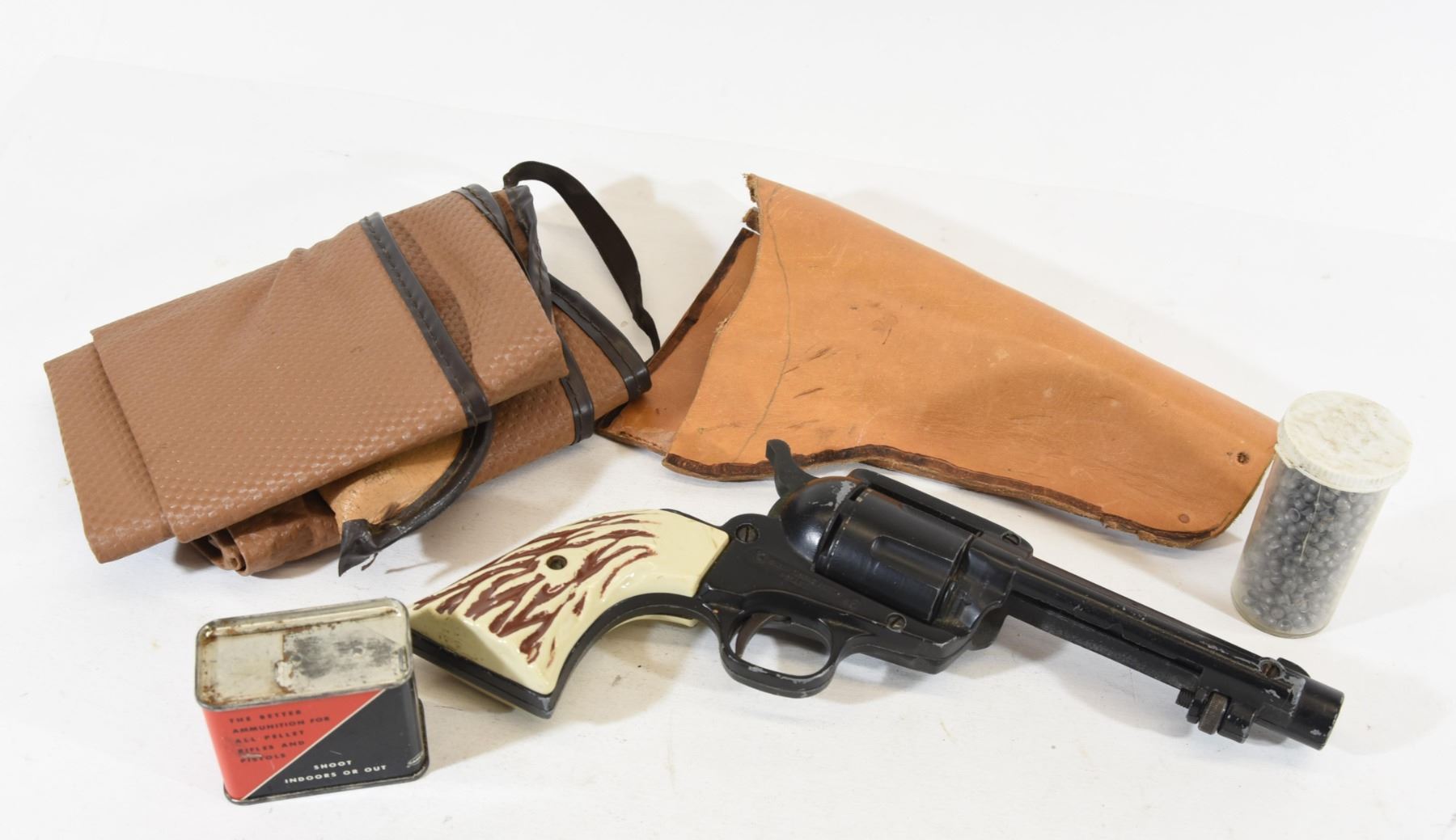 Crosman #6 Pellet Pistol with pellets and holster, one soft gun case.