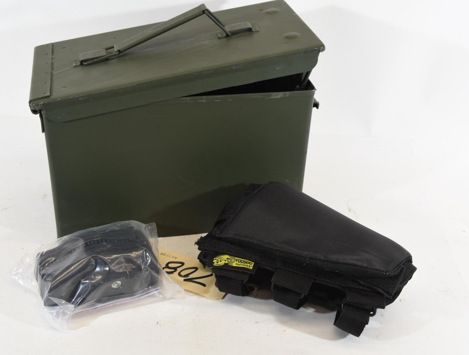 Metal ammo can, Regal trigger lock, Voodoo Tactical cheek rest.