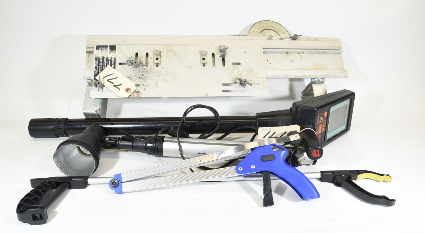 Bottom Line Side Finder, two grabbers, Optex light tripod, Black & Decker Mitre Mate. MUST PICKUP. WILL NOT SHIP.