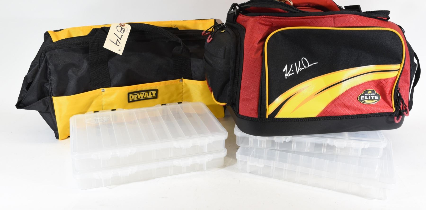 Dewalt Tool Bag, Plano Elite Fishing Bag with new four tackle trays.