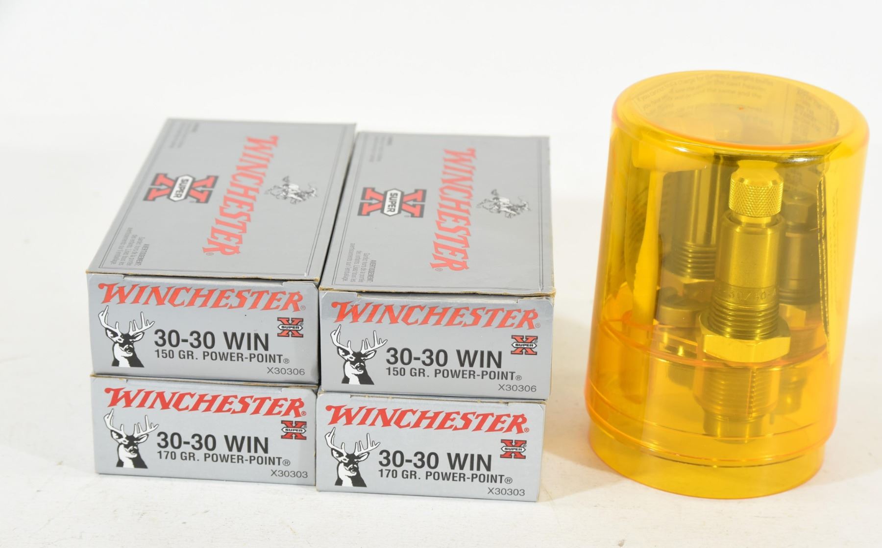 40 rnds Winchester 150grn PP, 40 rnds Winchester 170grn PP, Lee Collet dies.