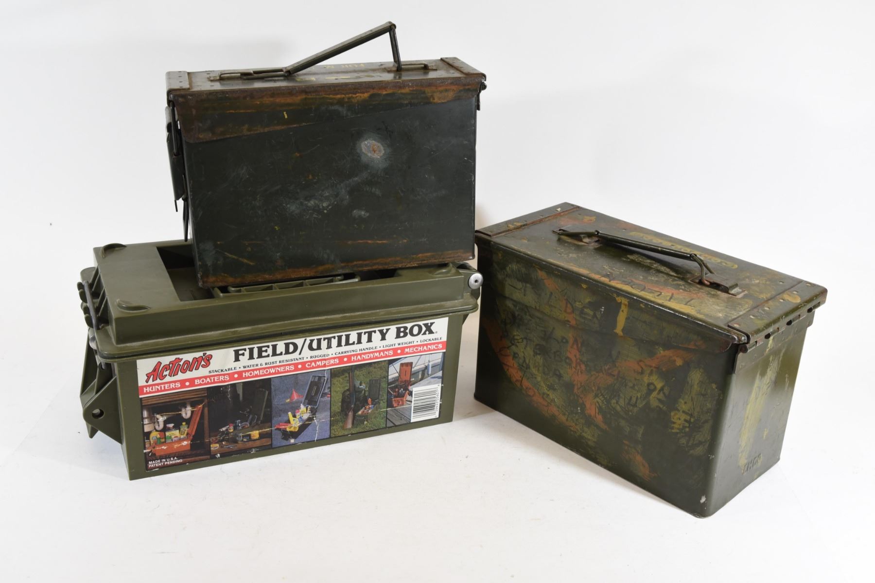 2 metal 1 plastic ammo can.