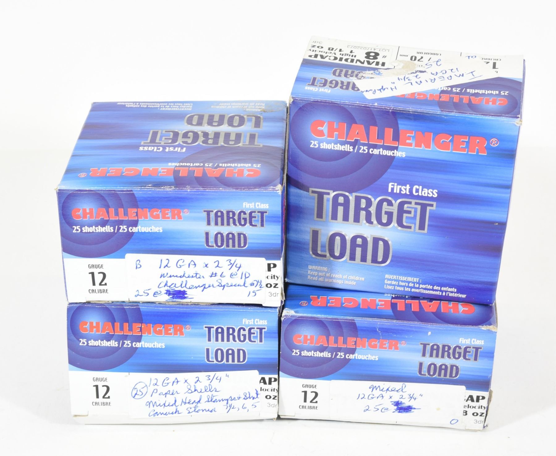 1) 25 rnds, 2 3/4" mixed shot size, some paper & some plastic 2) 25 rnds. 2 3/4" mixed head stamps, shot size, 24 paper, 1 plastic 3) 25 rnds. 2 3/4" 10 Win. # 6 & 15 callenger Spcl. # 7 1/2 plastic 4) 25 rnds. 2 3/4" Imperial high brass # 5