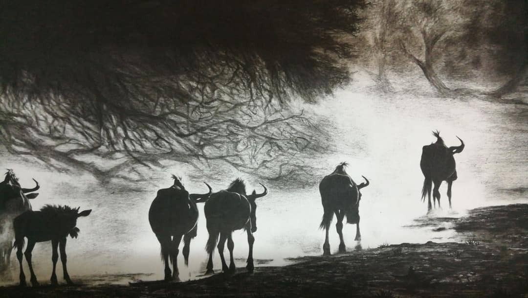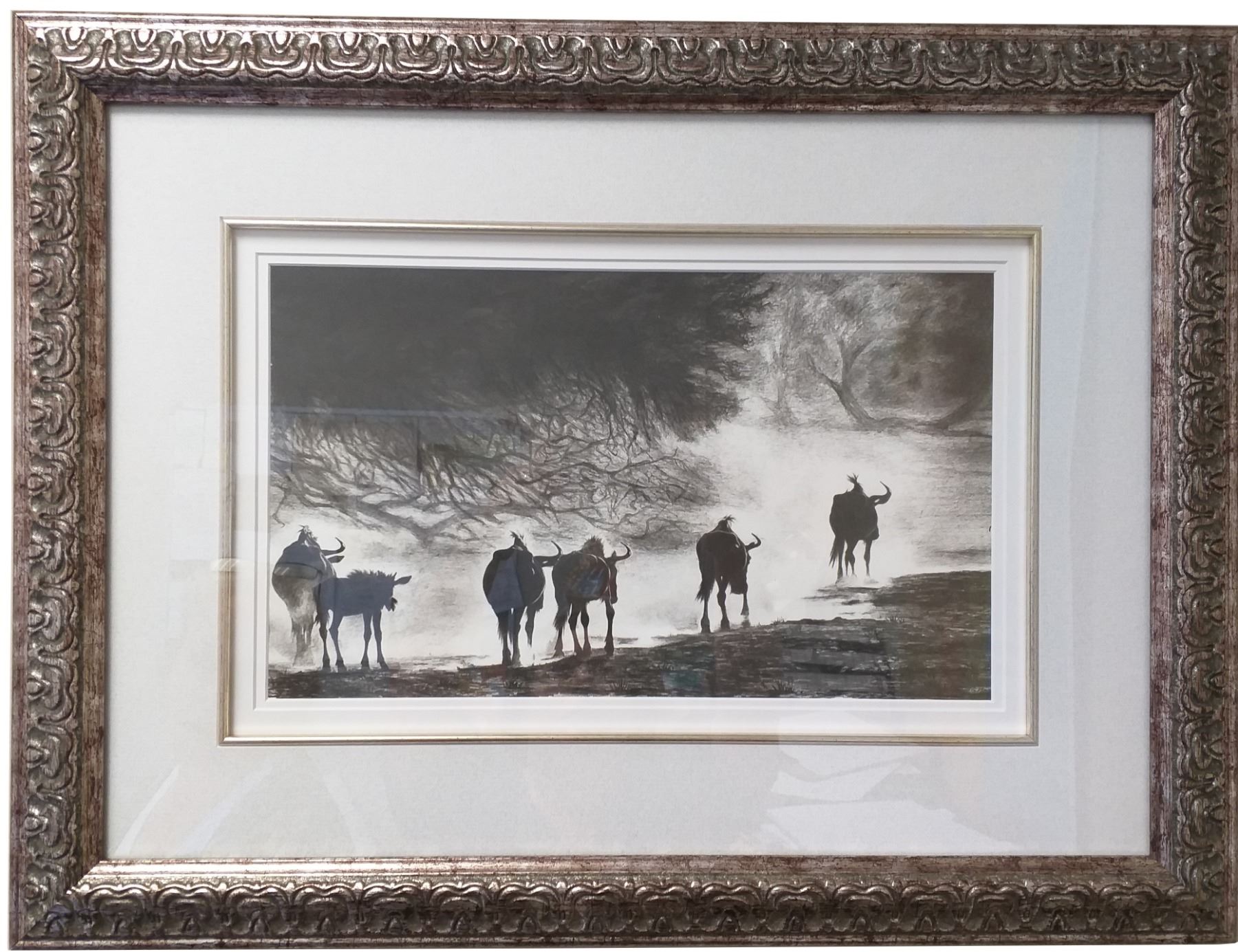 Gisela Marnewecke Painting "Wildebeest at Sunset" - Print of the original