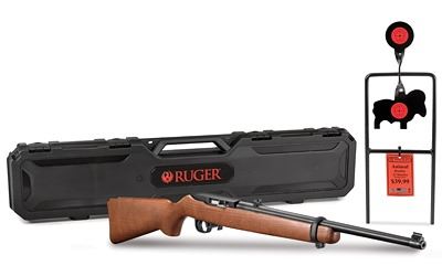 Ruger, 10/22 Carbine, Semi-automatic Rifle, 22 LR, 18.5" Barrel, Satin Black Finish, Hardwood Stock, 10Rd, Adjustable Rear and Bead Front Sight, Ruger branded Flambeau hard case and Taylor Targets Animal Spinner Target