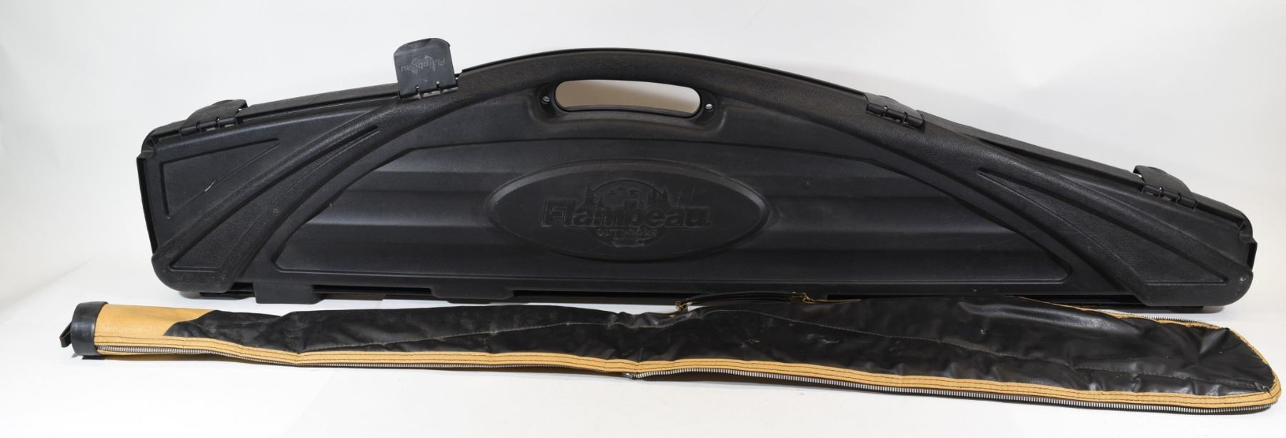 1) Flambeau hard case 51" long 2) soft case 49" length, zipper missing teeth, cracked and worn.