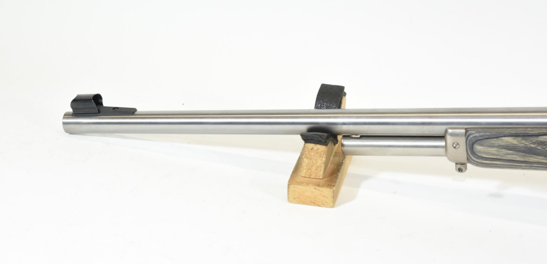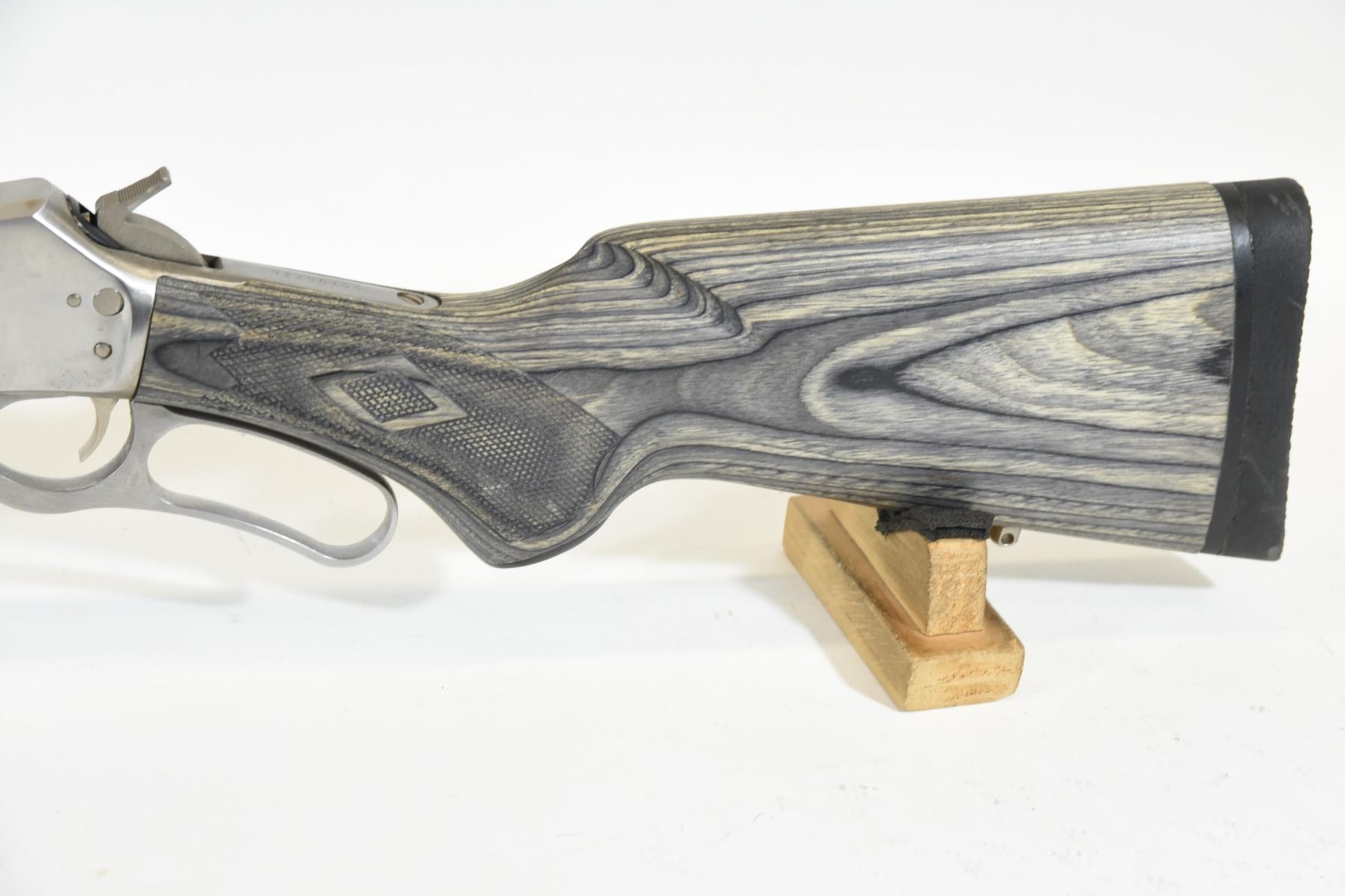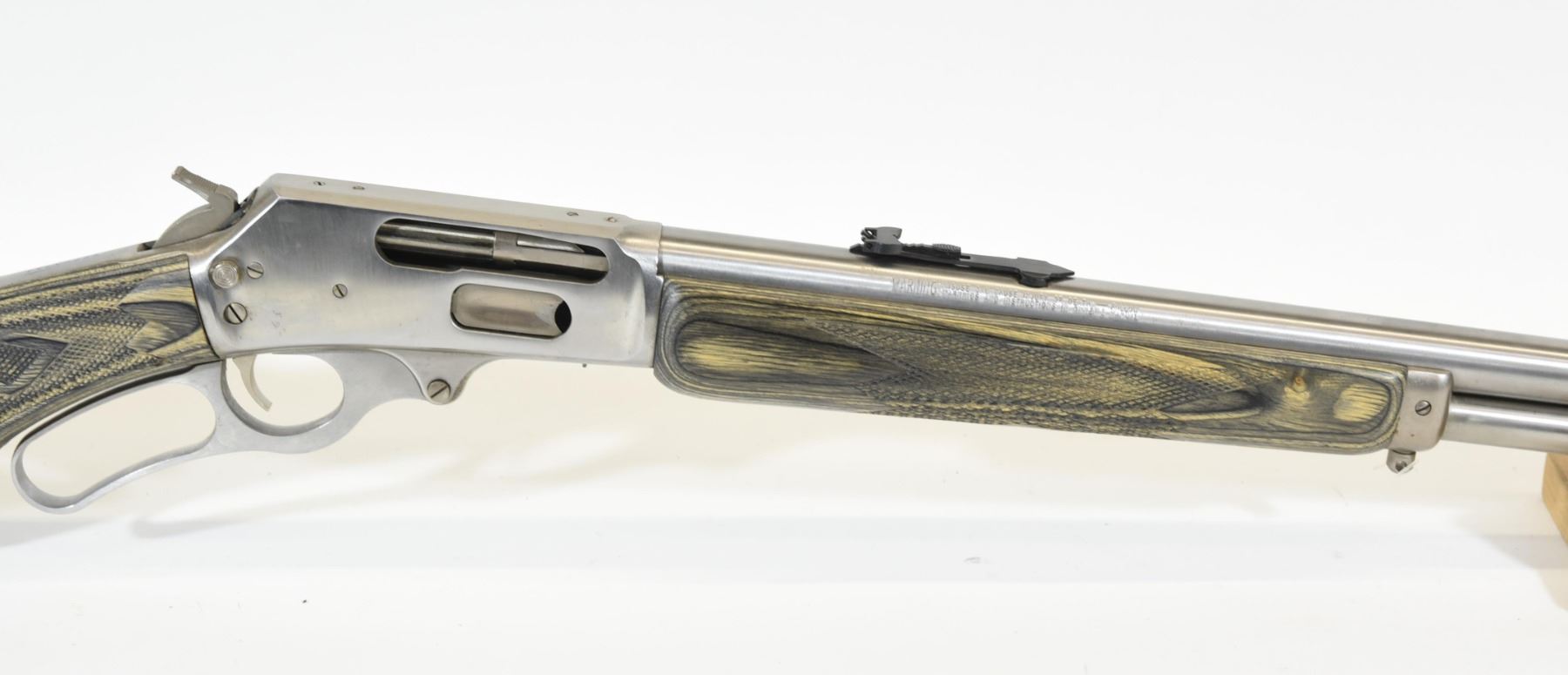 Non-restricted, lever action, 45-70 Govt, 24" barrel, SN 92206753. Laminated wood stock very good, stainless frame has some pit marks and a scratch, bore excellent. Comes with some documents and trigger extension.