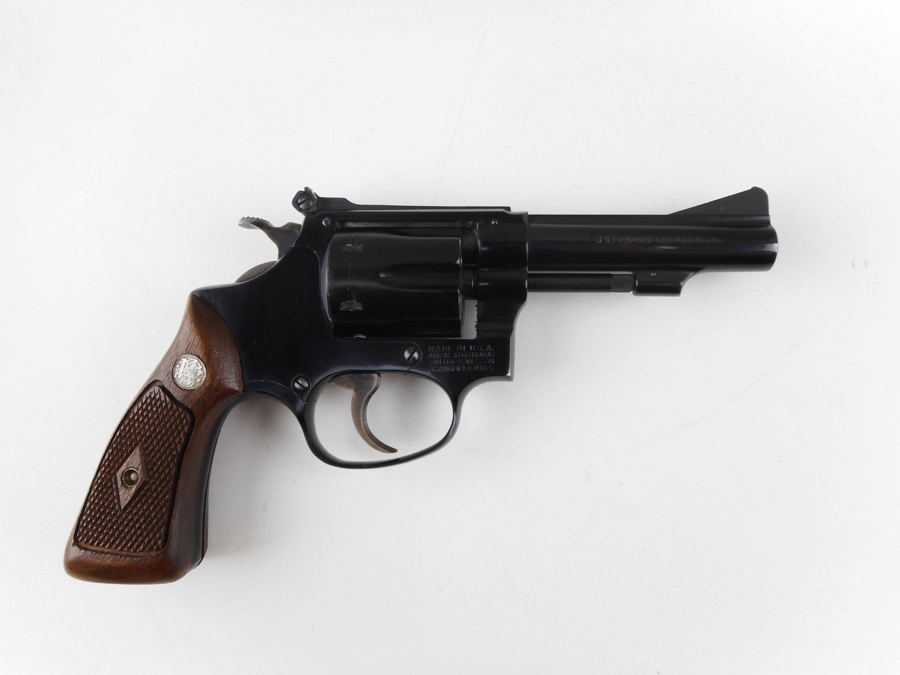 SMITH & WESSON , MODEL: 43 AIRWEIGHT , CALIBER: 22 LR , BORE IS VERY GOOD. HOLDS COCK, INDEXES WELL, ACTION IS TIGHT. BLADE FRONT AND ADJUSTABLE REAR SIGHTS. TWO PIECE CHECKERED WOOD GRIP PANELS WITH S&W LOGO. SHOWS SOME HANDLING MARKS. ACTION: REVOLVER , BARREL LENGTH: 89MM , SERIAL # 115300 , CONDITION: 8/10 , CLASS: CANADIAN PROHIBITED CLASS , THIS ITEM WILL NOT BE SOLD IN LOT ORDER. THE PROHIBITED ITEMS WILL BE SOLD AFTER THE DEACTIVATED CLASS 5000 SERIES AND BEFORE THE 3000 SERIES NON RESTRICTED. PLEASE SEE LOT 0C LOT LEGEND FOR FULL DETAILS