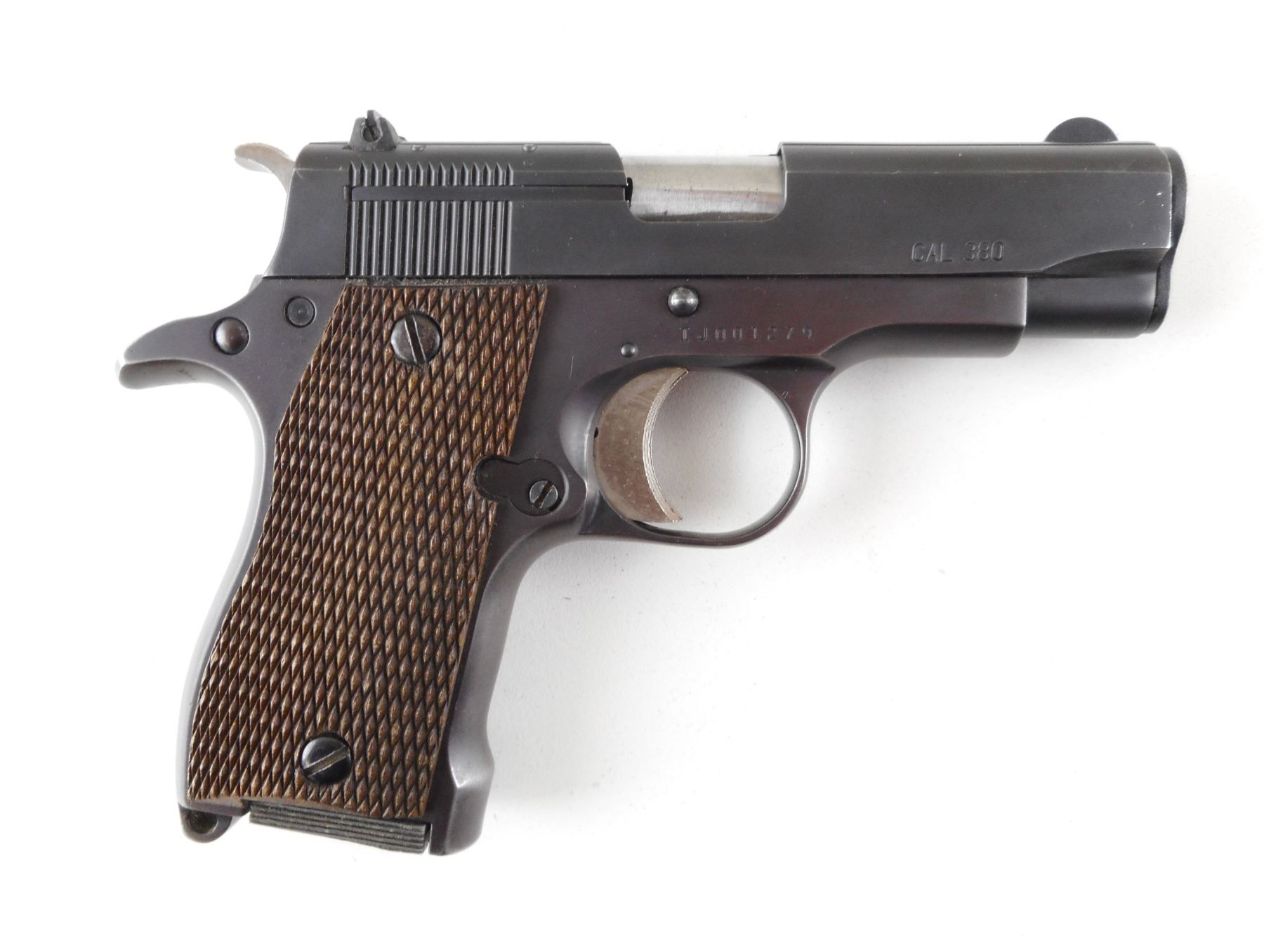 IVER JOHNSON , MODEL: PONY , CALIBER: 380 AUTO , COMES WITH MAGAZINE. BORE IS GOOD. BLADE FRONT AND RAISED NOTCH REAR SIGHT. CHECKERED WOOD GRIP PANELS. LANYARD LOOP. SHOWS VERY LITTLE HANDLING MARKS. ACTION: SEMI-AUTOMATIC HANDGUN , BARREL LENGTH: 76MM , SERIAL # IJ001279 , CONDITION: 7/10 , CLASS: CANADIAN PROHIBITED CLASS , THIS ITEM WILL NOT BE SOLD IN LOT ORDER. THE PROHIBITED ITEMS WILL BE SOLD AFTER THE DEACTIVATED CLASS 5000 SERIES AND BEFORE THE 3000 SERIES NON RESTRICTED. PLEASE SEE LOT 0C LOT LEGEND FOR FULL DETAILS