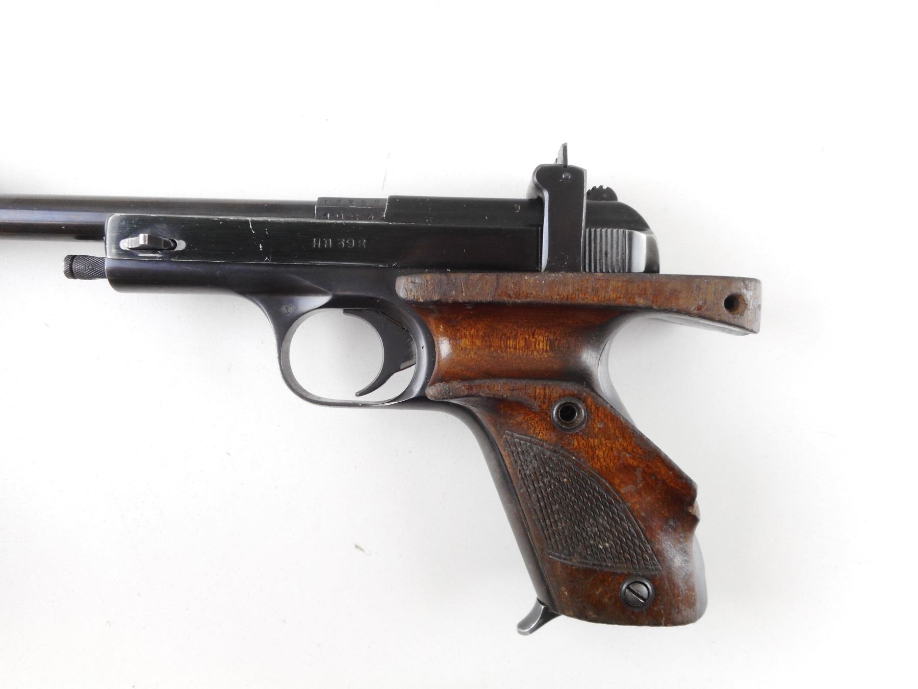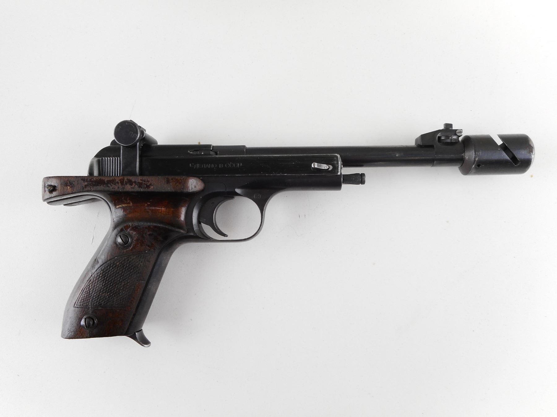 VOSTOK , MODEL: MARGOLIN , CALIBER: 22 LR , COMES WITH MAGAZINE. BORE IS VERY GOOD. ADJUSTABLE FRONT AND ADJUSTABLE REAR SIGHTS. TWO PIECE HARDWOOD GRIPS WITH THUMBREST AND SMALL CHIP ON LEFT PANEL AND LARGE CRACK ON RIGHT PANEL AS WELL AS MISFITTING GRIP SCREW. MUZZLE BREAK. SHOWS SOME HANDLING MARKS. ACTION: SEMI-AUTOMATIC HANDGUN , BARREL LENGTH: 152MM , SERIAL # HA398 , CONDITION: 5/10 , CLASS: CANADIAN RESTRICTED CLASS