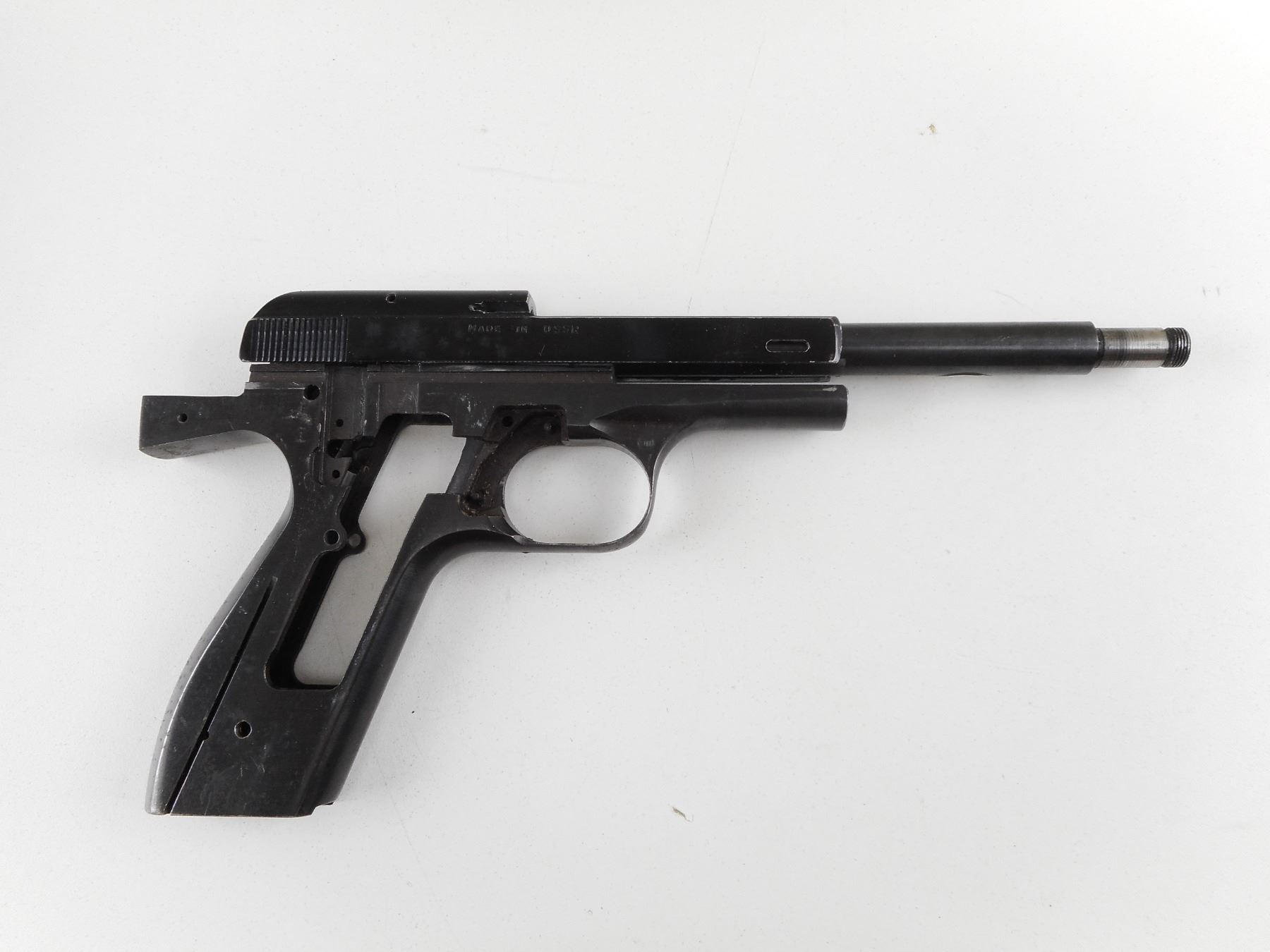 VOSTOK , MODEL: MARGOLIN, CALIBER: 22 LR , DOES NOT COME WITH MAGAZINE. STRIPPED LOWER RECEIVER ONLY AN UPPER SLIDE AND BARREL, NO TRIGGER GROUP OR FIRING PIN ASSEMBLY PARTS. ACTION: SEMI-AUTOMATIC HANDGUN , BARREL LENGTH: 164MM , SERIAL # A2096B , CONDITION: PARTS GUN , CLASS: CANADIAN RESTRICTED CLASS