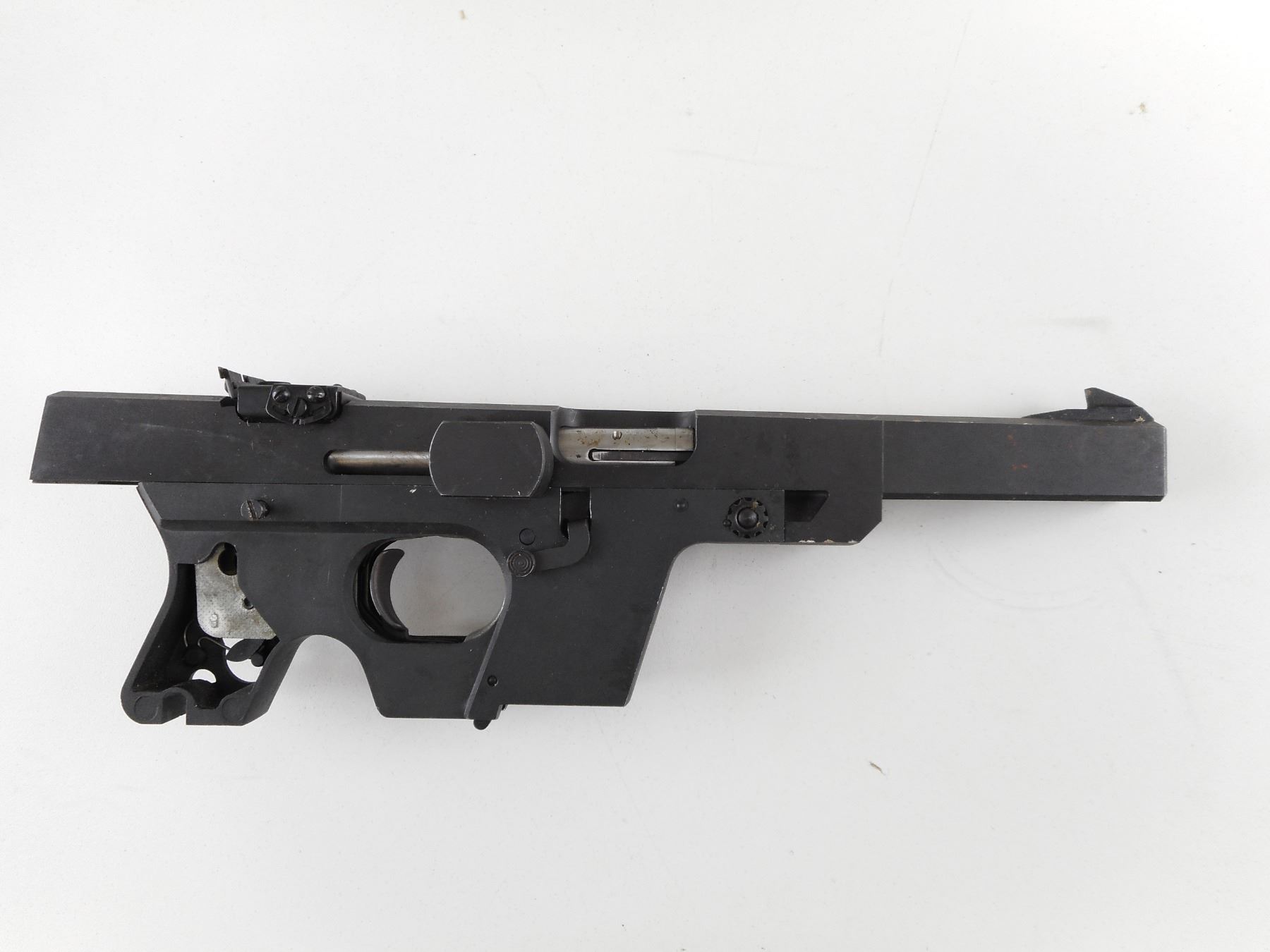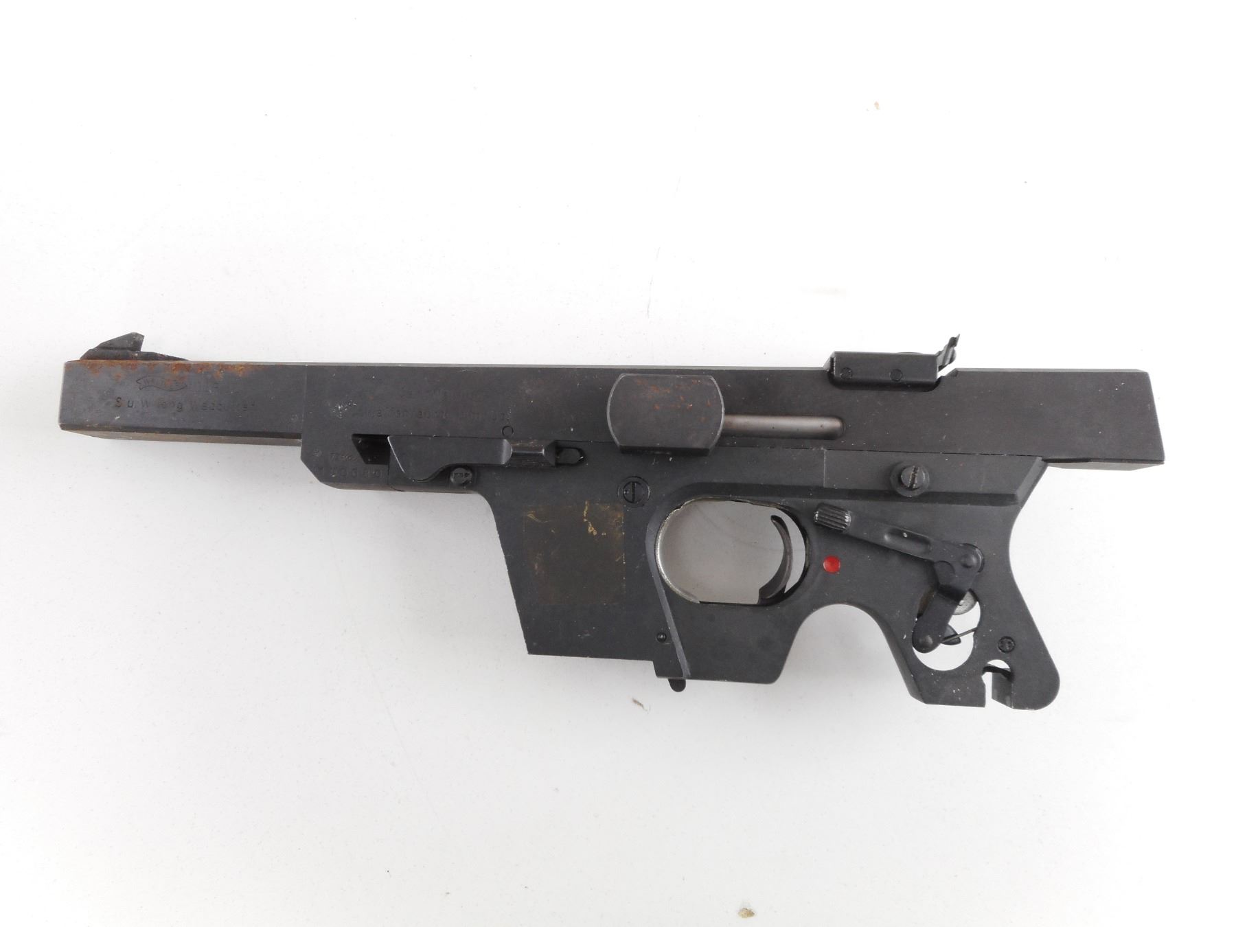 WALTHER , MODEL: GSP , CALIBER: 32 S&W LONG , DOES NOT COME WITH THE MAGAZINE, THE GRIP ASSEMBLY. HAS A VERY GOOD BORE. RAMP FRONT AND ADJUSTABLE REAR SIGHT. SOME SURFACE RUST. SHOWS SOME HANDLING MARKS. ACTION: SEMI-AUTOMATIC HANDGUN , BARREL LENGTH: 114MM , SERIAL # 100680 , CONDITION: PARTS GUN , CLASS: CANADIAN RESTRICTED CLASS