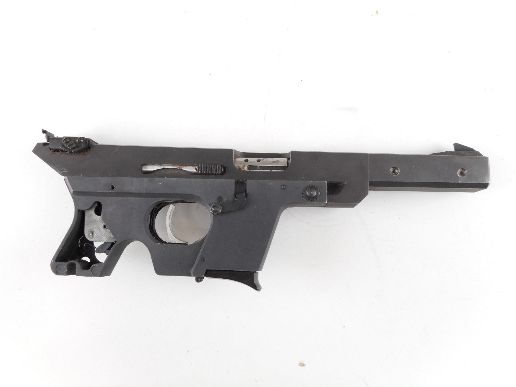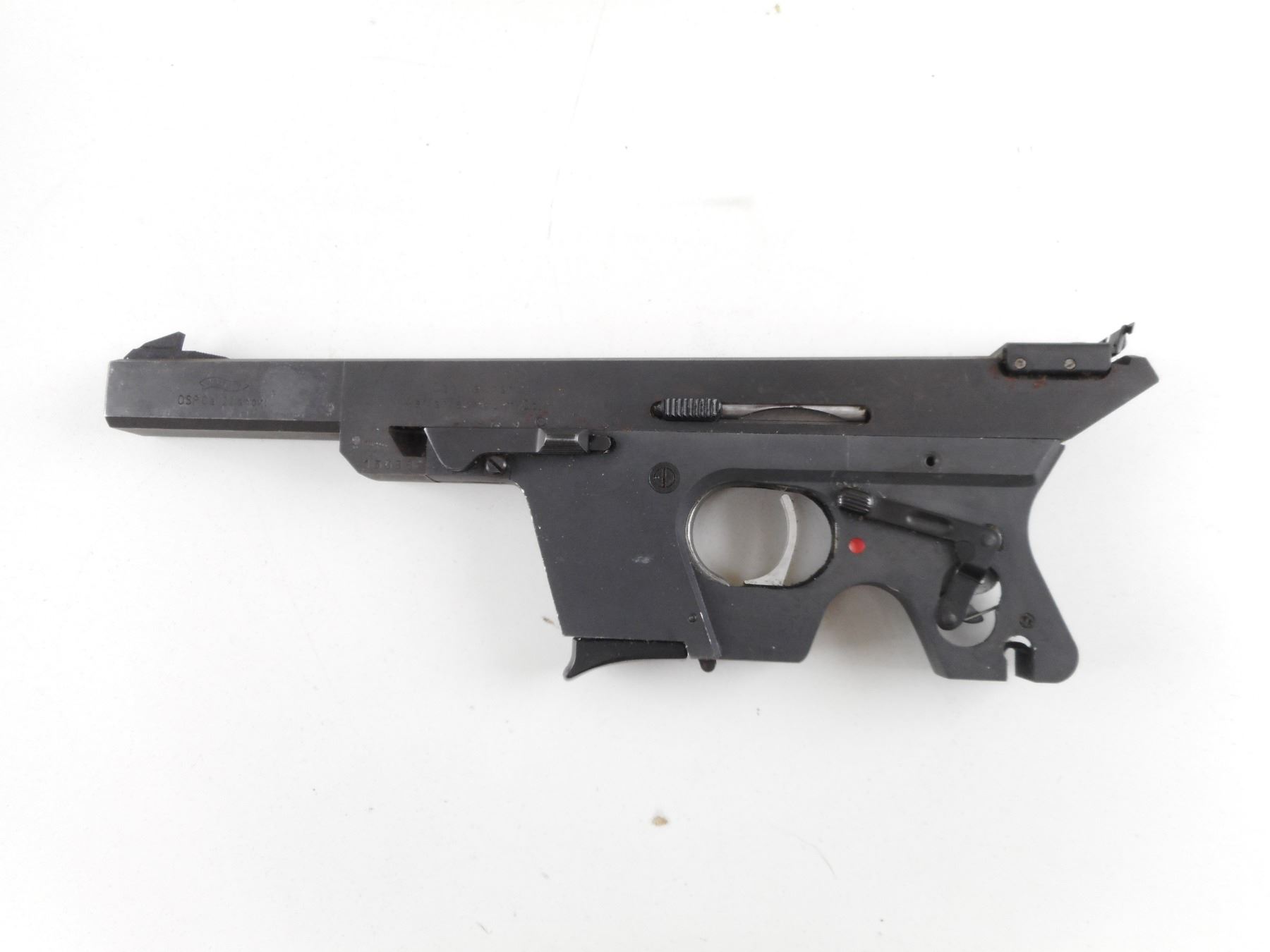 WALTHER , MODEL: OSP , CALIBER: 22 SHORT , COMES WITH MAGAZINE. BORE IS VERY GOOD. MISSING THE GRIP ASSEMBLY.ACTION: SEMI-AUTOMATIC HANDGUN , BARREL LENGTH: 115MM , SERIAL # 13588 , CONDITION: PARTS GUN , CLASS: CANADIAN RESTRICTED CLASS