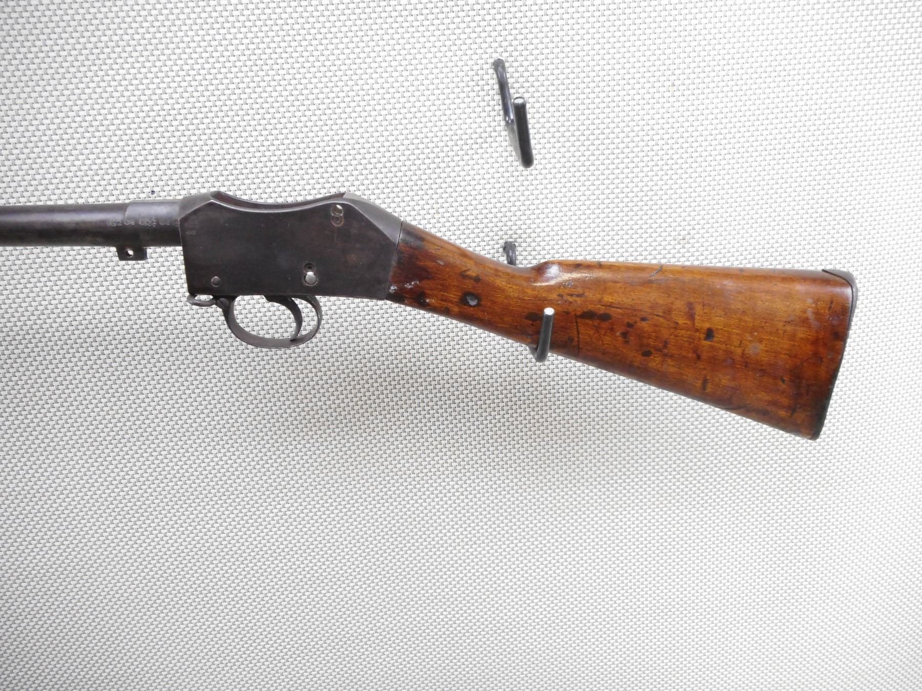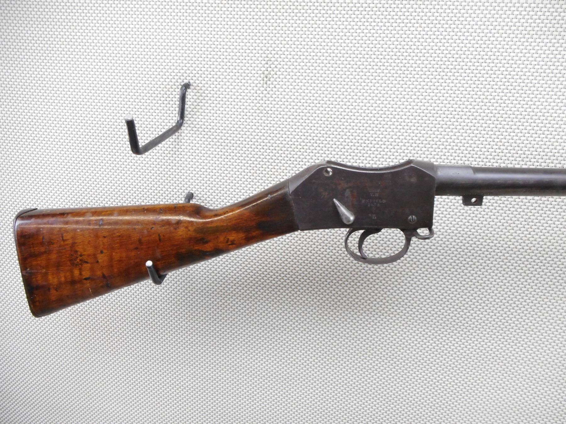 MARTINI HENRY , MODEL: MK I , CALIBER: 577 /450 , BORE IS POOR. DATED 1873. THIS FIREARMS HAS NO LEVER, BOLT, FOREND, BANDS, REAR SIGHT. IT DOES HAVE A TRIGGER AND TRIGGER GUARD, HAS ORIGINAL BUTT STOCK WITH CROSS HATCHED BUTT PLATE. SHOWS EXTENSIVE HANDLING MARKS. ACTION: MARTINI FALLING BLOCK , BARREL LENGTH: 33" , SERIAL # 16583 , CONDITION: PARTS GUN , CLASS: CANADIAN ANTIQUE CLASS