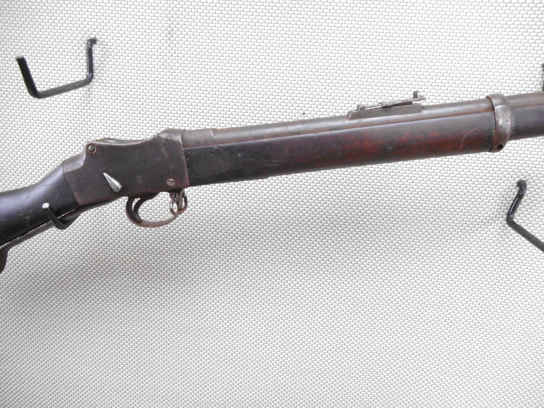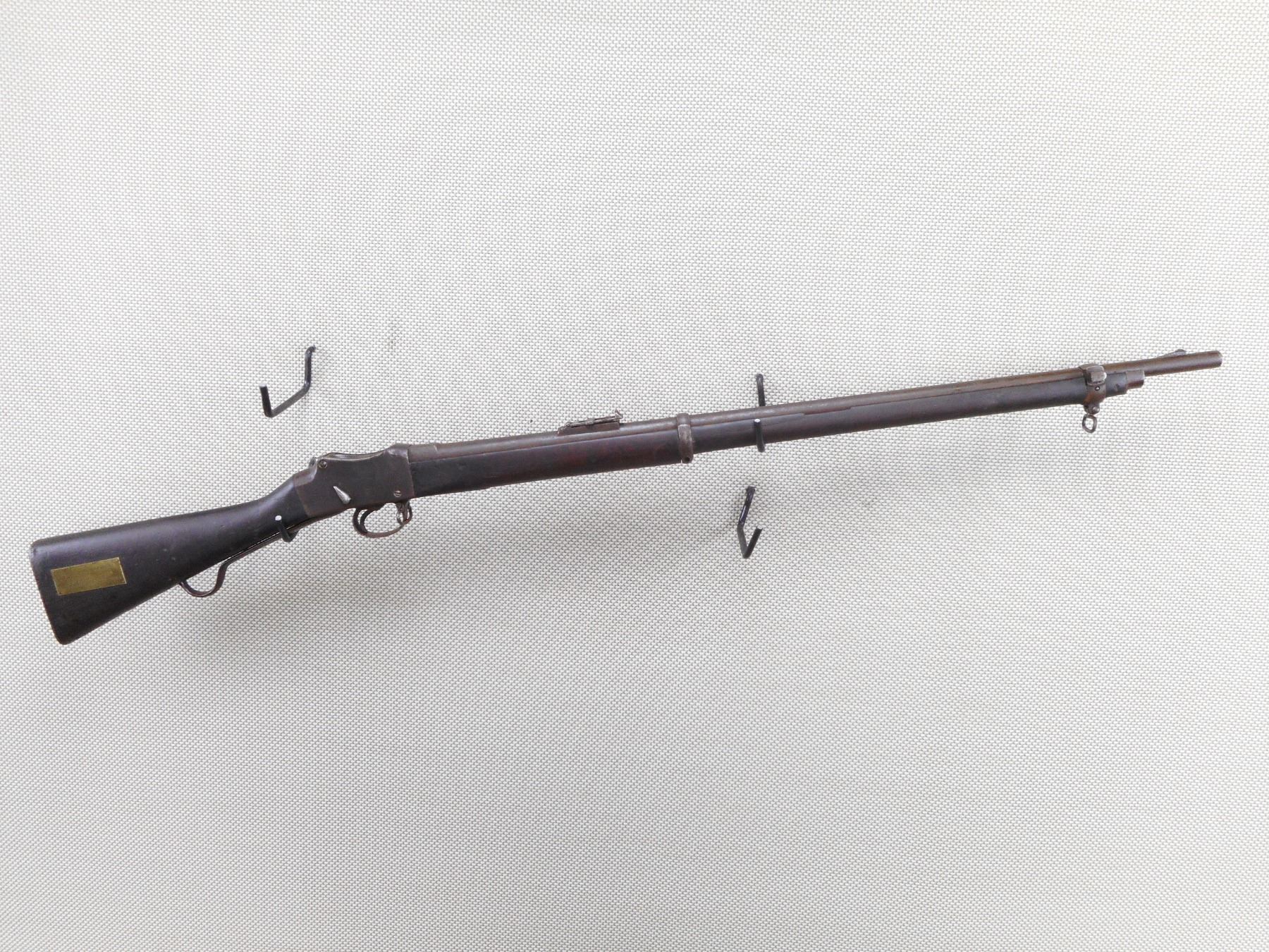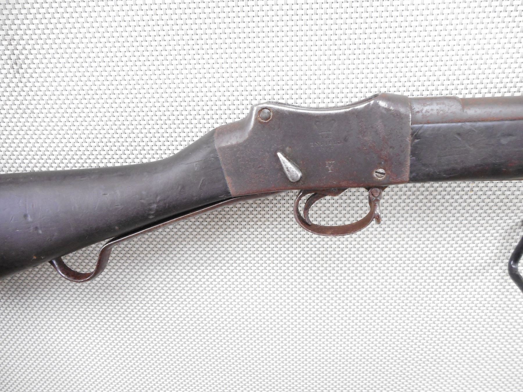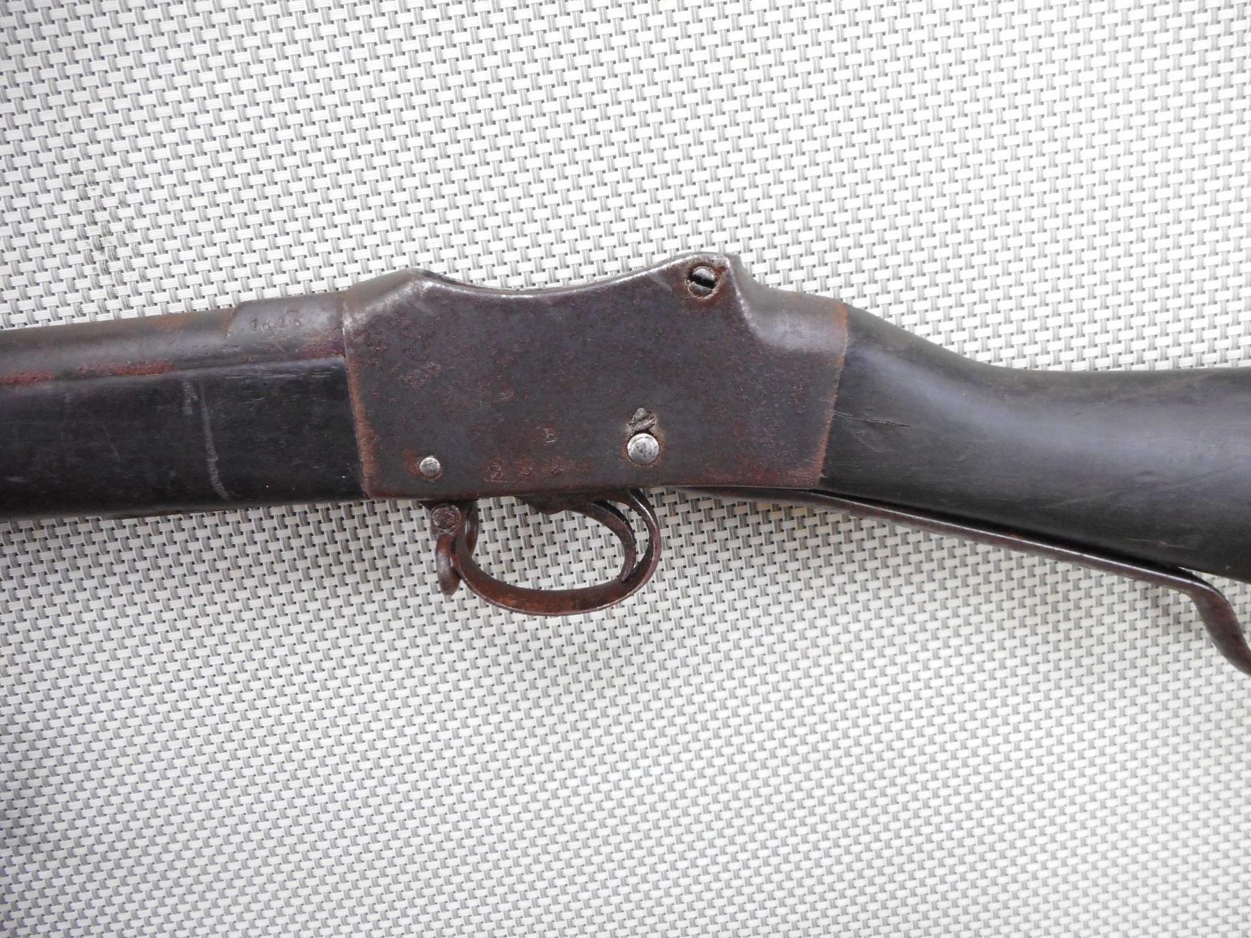 MARTINI HENRY , MODEL: MK IV , CALIBER: 577 /450 , BORE IS DARK. RAMP FRONT AND ADJUSTABLE REAR SIGHT. TWO PIECE HARDWOOD STOCK. STEEL BUTT PLATE. LONG LEVER. EXTENSIVE RUST ON ALL METAL PARTS. FEATURES A BRASS PLATE ON THE BUTT (PLEASE SEE PHOTO) SHOWS EXTENSIVE HANDLING MARKS. ACTION: MARTINI FALLING BLOCK , BARREL LENGTH: 33" , SERIAL # 783 , CONDITION: 5/10 ANTIQUE , CLASS: CANADIAN ANTIQUE CLASS