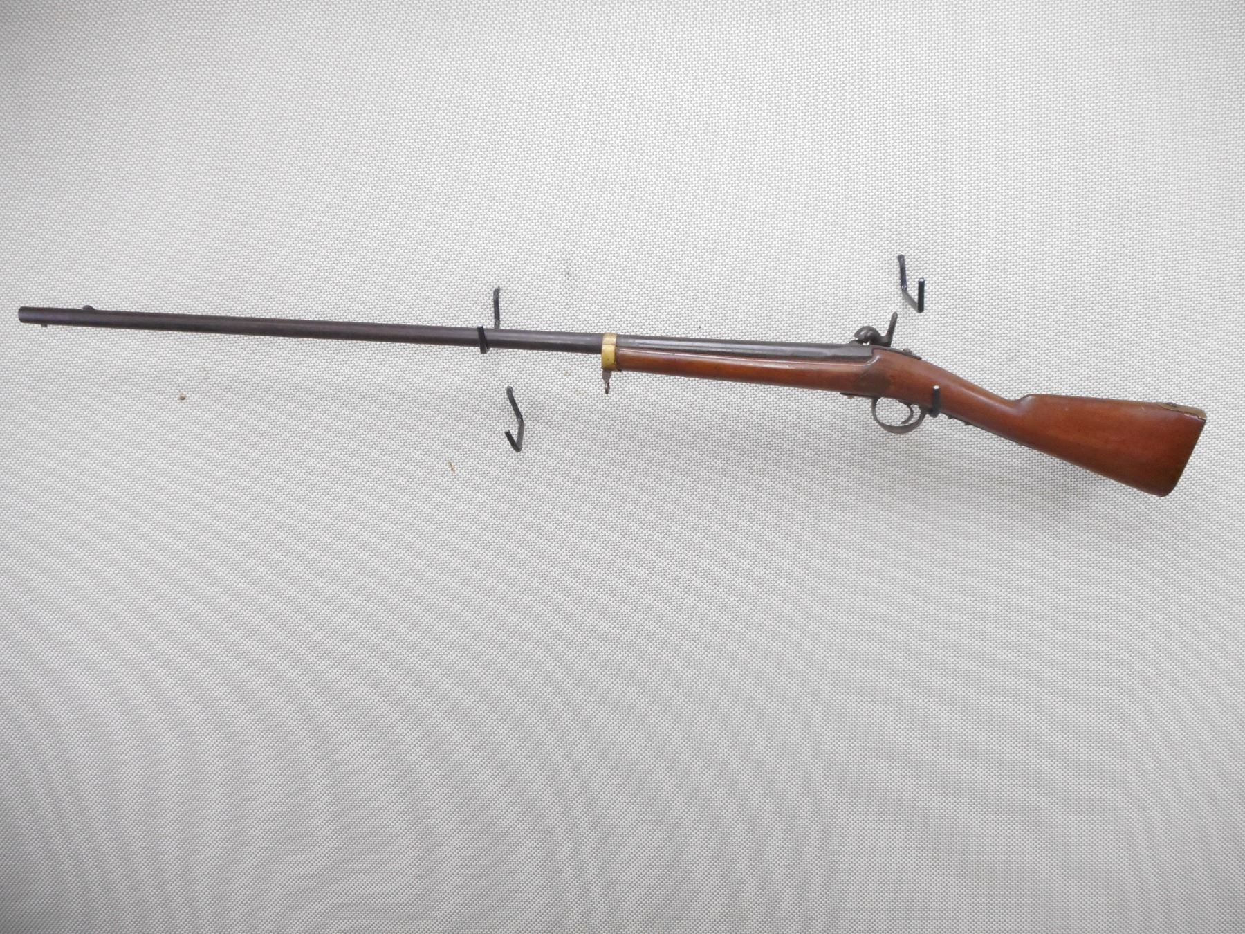 CHATELLERAULT , MODEL: SINGLE SHOT , CALIBER: 10 GA PERC , BORE IS DARK. BLADE FRONT AND NO REAR SIGHT. MISSING THE RAM ROD. ONE PIECE HARDWOOD STOCK WITH BRASS BUTT PLATE. SHOWS EXTENSIVE HANDLING MARKS. HAS REPLACED SCREWS ON TRIGGER GUARD. MISSING THE FOREND WOOD. REPAIR AT THE WRIST. ACTION: SINGLE SHOT PERCUSSION , BARREL LENGTH: 40" , SERIAL # N/A , CONDITION: 4/10 ANTIQUE , CLASS: CANADIAN ANTIQUE CLASS