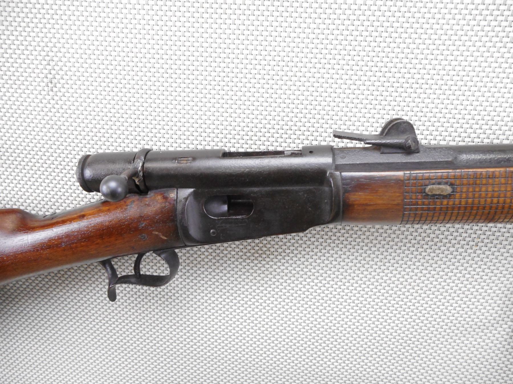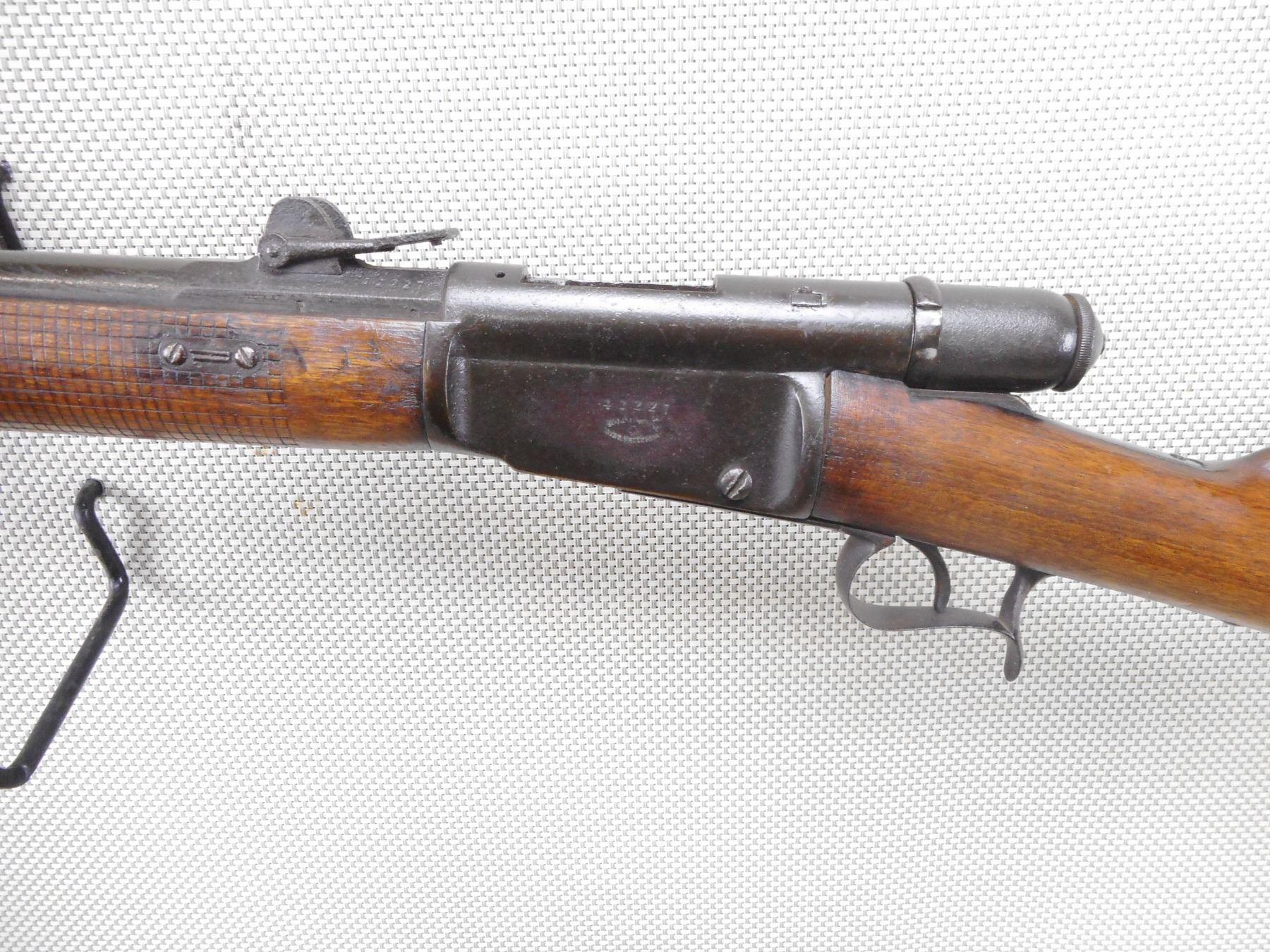 SWISS VETTERLI , MODEL: 69/71 , CALIBER: 41 SWISS , DARK BORE. BLADE FRONT AND ADJUSTABLE REAR SIGHTS. 3 PIECE HARDWOOD STOCK THAT RETAINS FULL MILITARY CONFIGURATION. CLEANING ROD. SOME LIGHT SURFACE PITTING. REPLACED BOLT KNOB. SLING SWIVEL LOOPS. SHOWS EXTENSIVE HANDLING MARKS. ACTION: BOLT ACTION REPEATER , BARREL LENGTH: 34" , SERIAL # 42227 , CONDITION: 4/10 , CLASS: CANADIAN ANTIQUE CLASS