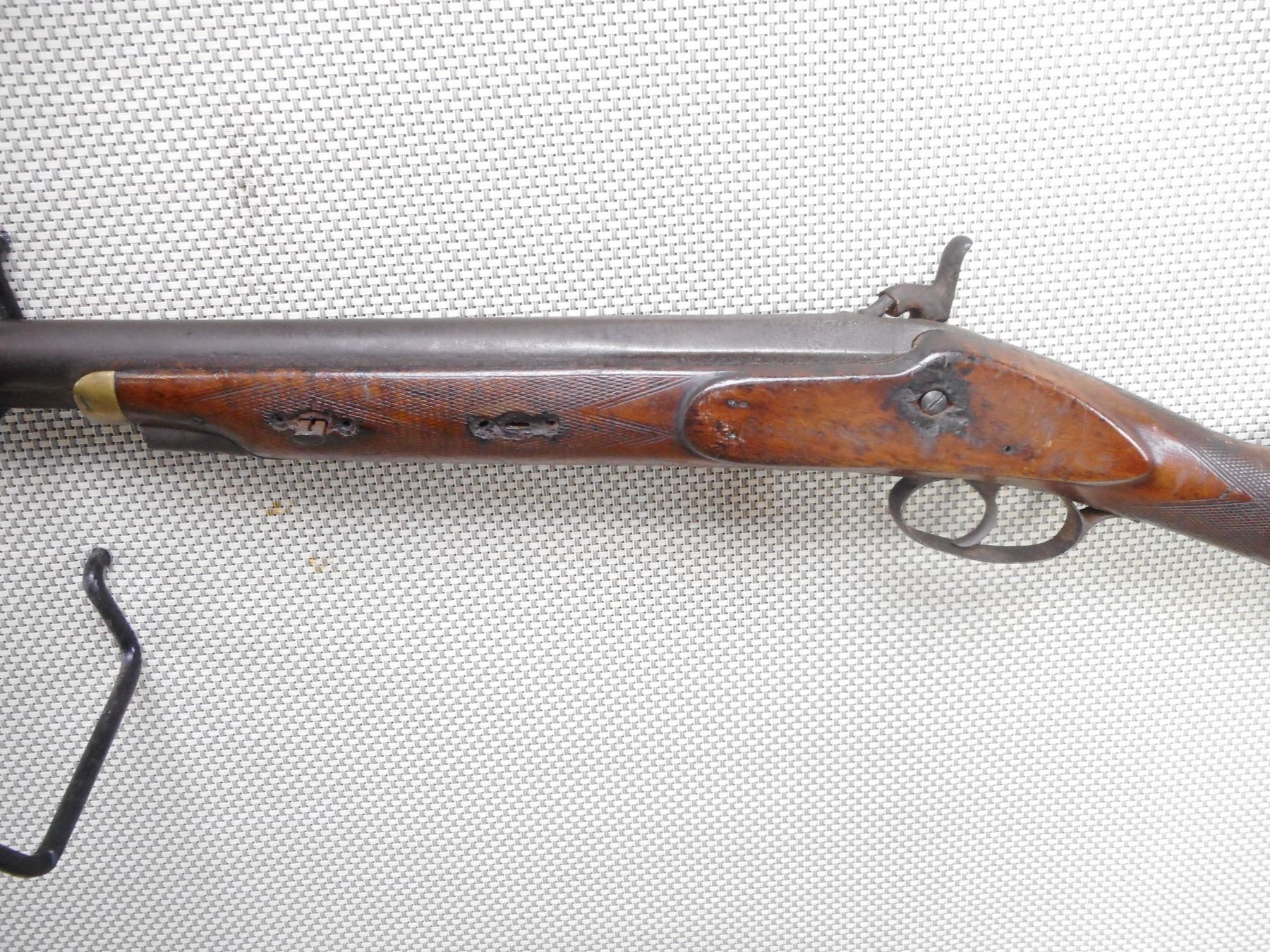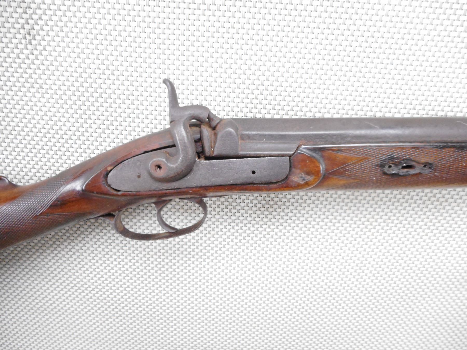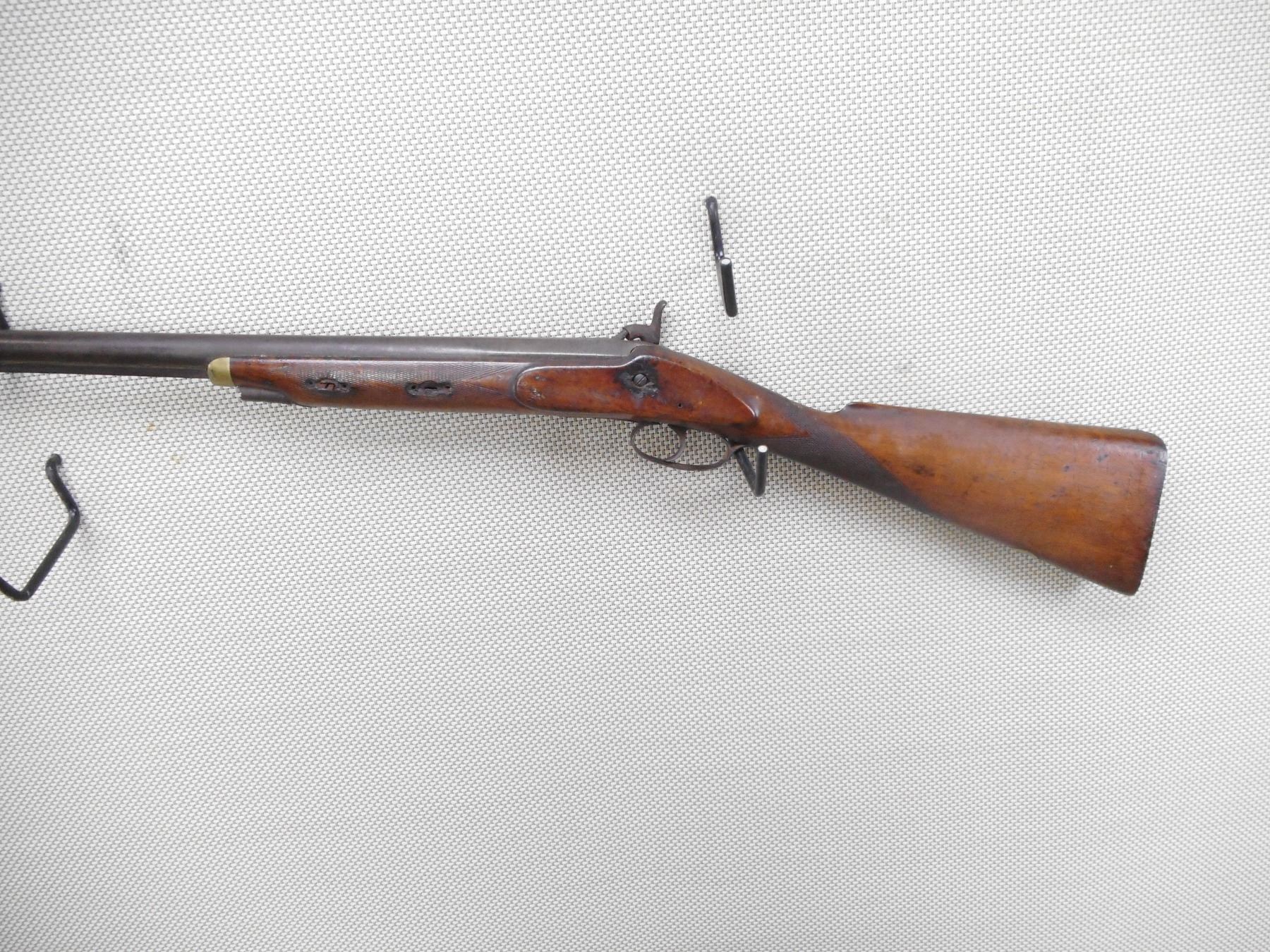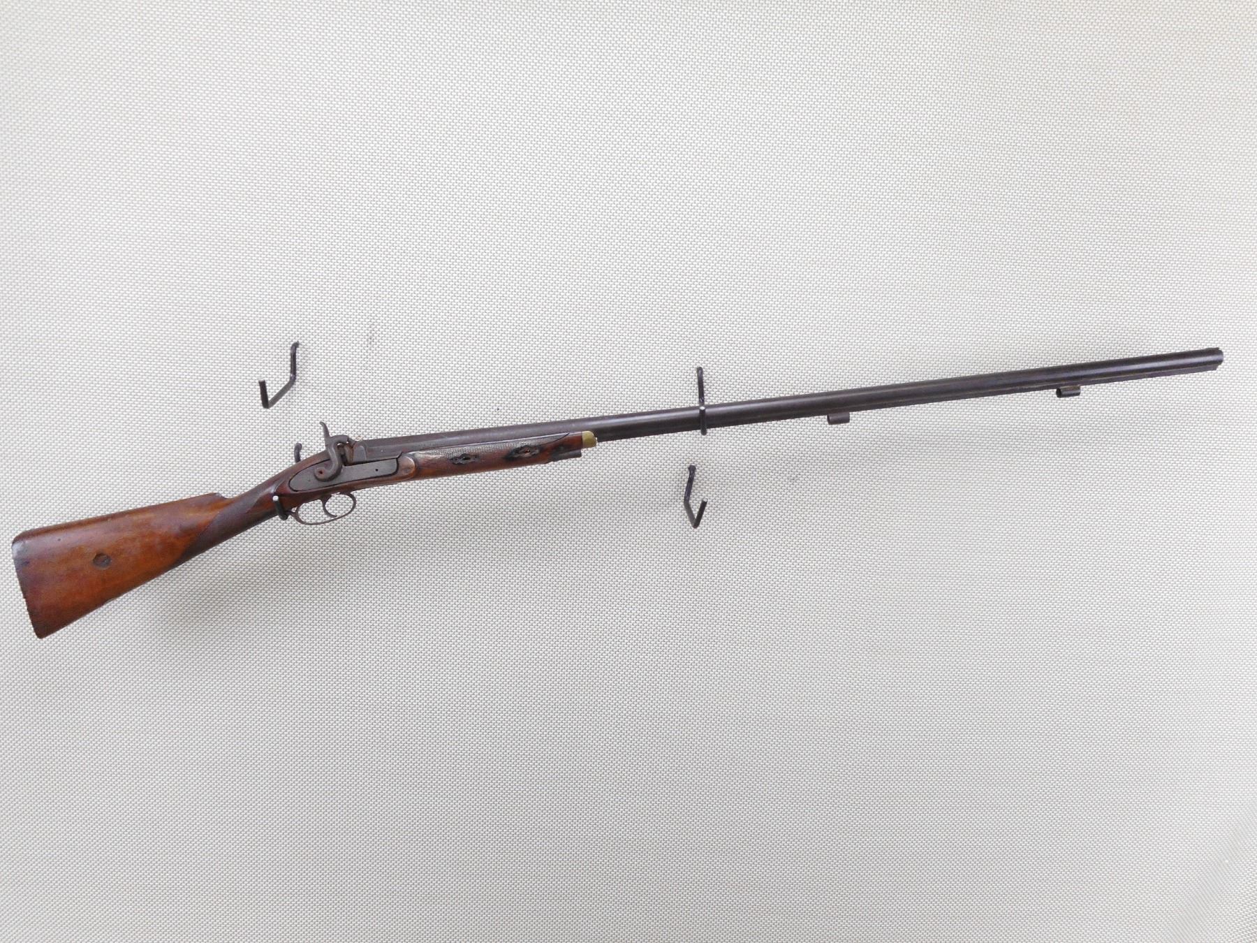 UNKNOWN , MODEL: SINGLE SHOT , CALIBER: 10 GA PERC , BORE IS DARK. ONE PIECE HARDWOOD STOCK WTH BRASS FOREND CAP. MISSING THE BUTT PLATE. MISSING THE RAM ROD. MISSING ONE OF THE BARREL WEDGES. SHOWS EXTENSIVE HANDLING MARKS. ACTION: SINGLE SHOT MUZZLE LOADER , BARREL LENGTH: 41" , SERIAL # N/A , CONDITION: 3/10 ANTIQUE , CLASS: CANADIAN ANTIQUE CLASS