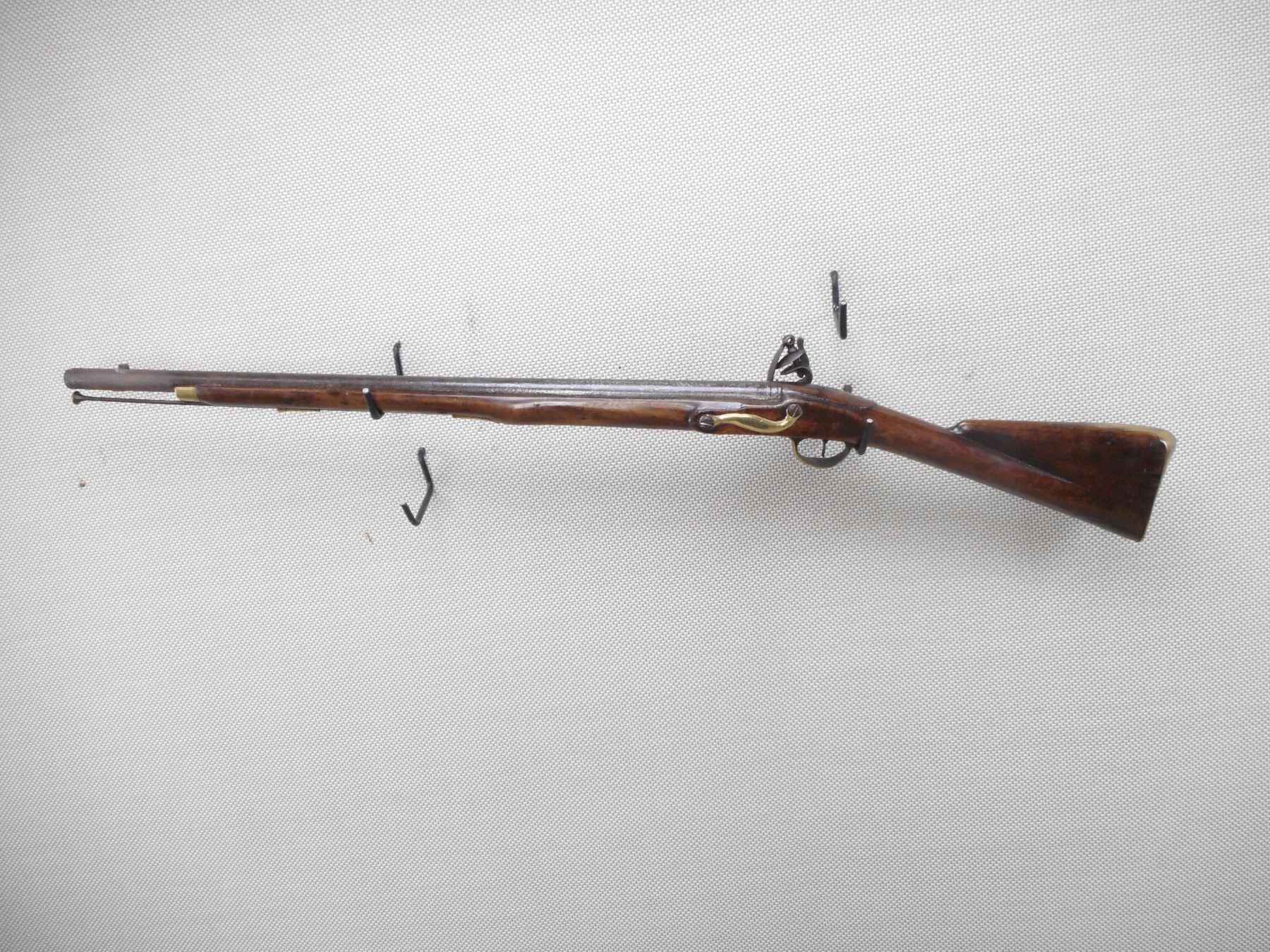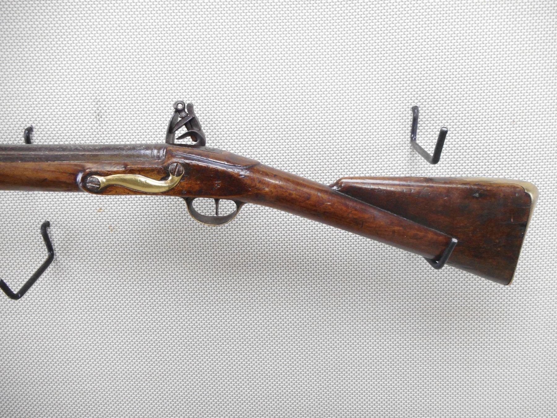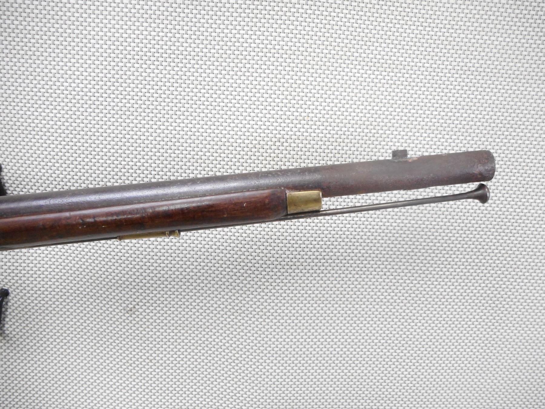 ELLIOT CARBINE, TOWER , MODEL: FLINTLOCK , CALIBER: 79 CAL , THE INFORMATION REGARDING THE MAKE AND MODEL IS FROM THE CONSIGNOR. HE PURCHASED THIS ITEM FROM A PREVIOUS EUROPEAN AUCTION HOUSE AND WAS GIVEN THIS DESCRIPTION. BORE IS POOR AND PITTED. MAIN SPRING IS WEAK. REPLACED BLADE FRONT SIGHT. BARREL SHOWS PITTING, LIGHT RUST, BRITISH PROOFS. LOCK IS MARKED TOWER GR WITH CROWN. BRASS BUTT PLATE WITH PARTIAL I/0 STAMPED ON IT. MODERN RAM ROD. BRASS PLATE AND TRIGGER GUARD. SHOWS NUMEROUS HANDLING MARKS AND WEAR. ACTION: FLINTLOCK , BARREL LENGTH: 31" , SERIAL # N/A , CONDITION: 5/10 , CLASS: CANADIAN ANTIQUE CLASS