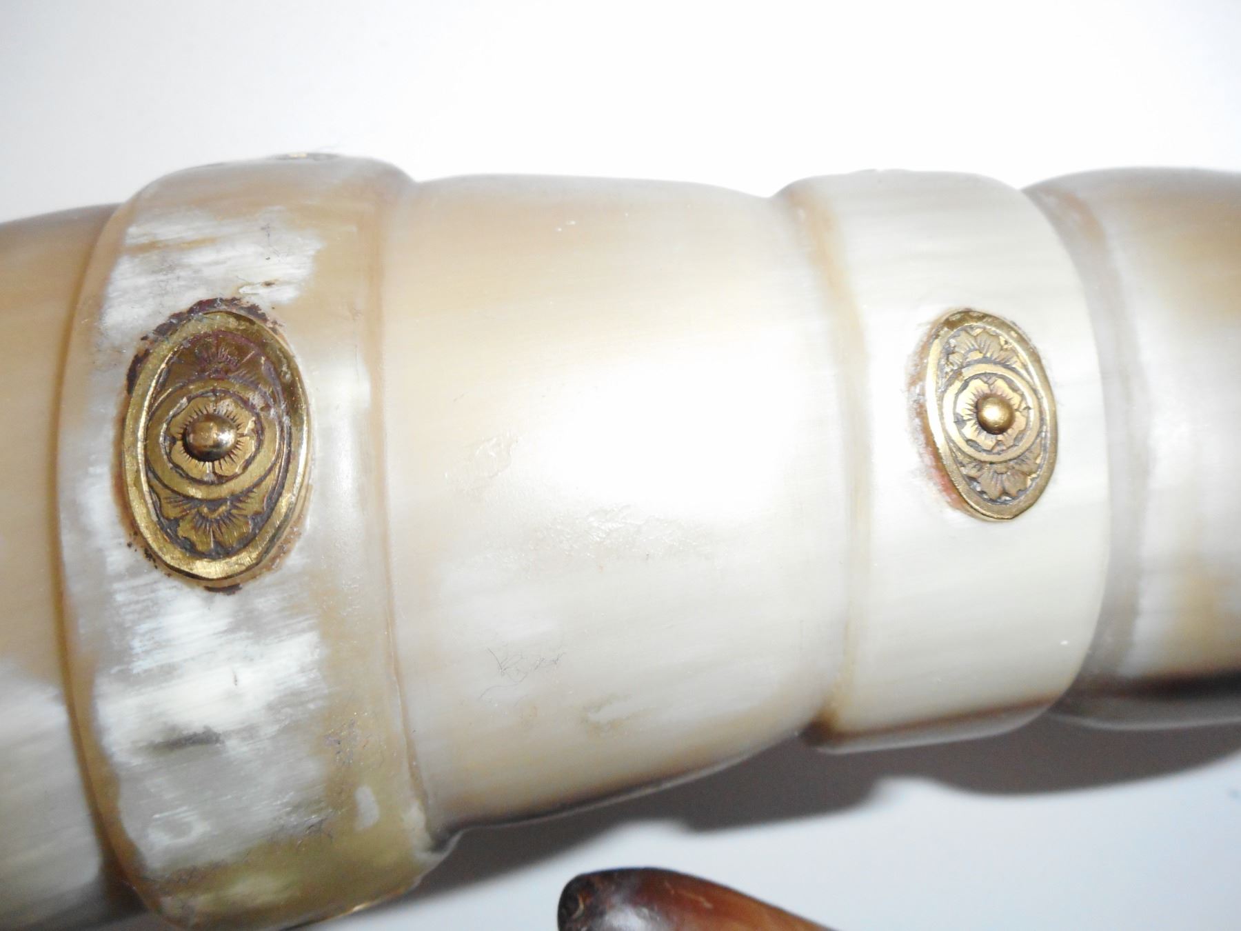 Lot 1058 HAND CRAFTED ANIMAL ANTLER POWDER HORN