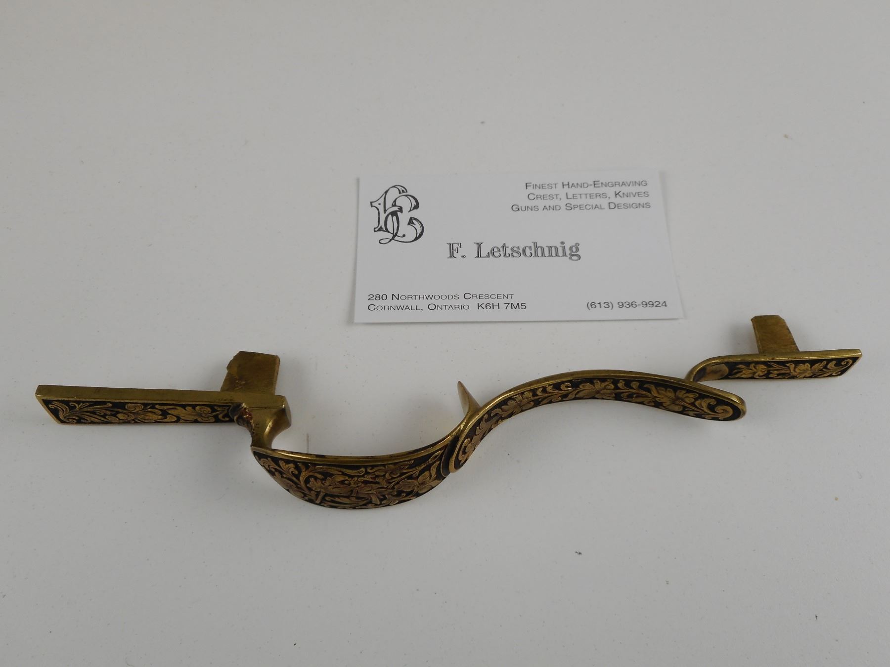 HAND CRAFTED BRASS TRIGGER GUARD FOR A BLACK POWDER RIFLE , BRASS FINISHING, LENGTH APPROX. 8" WIDTH 1/2". MADE SPECIFICALLY FOR A BLACK POWDER RIFLE (RIFLE DID NOT GET FINSHED). CAREFULLY HAND CRAFTED BY F. LETSCHNIG.