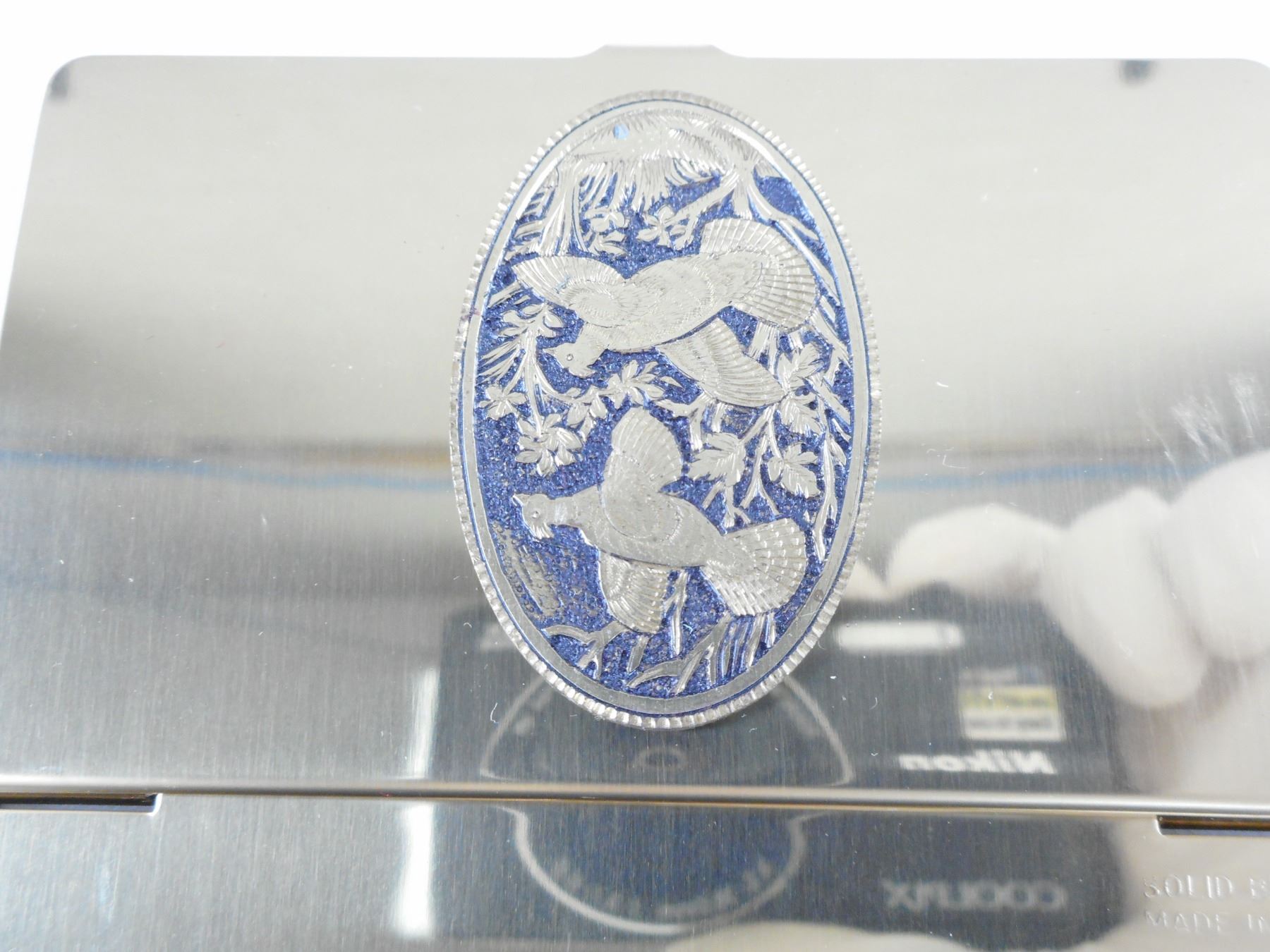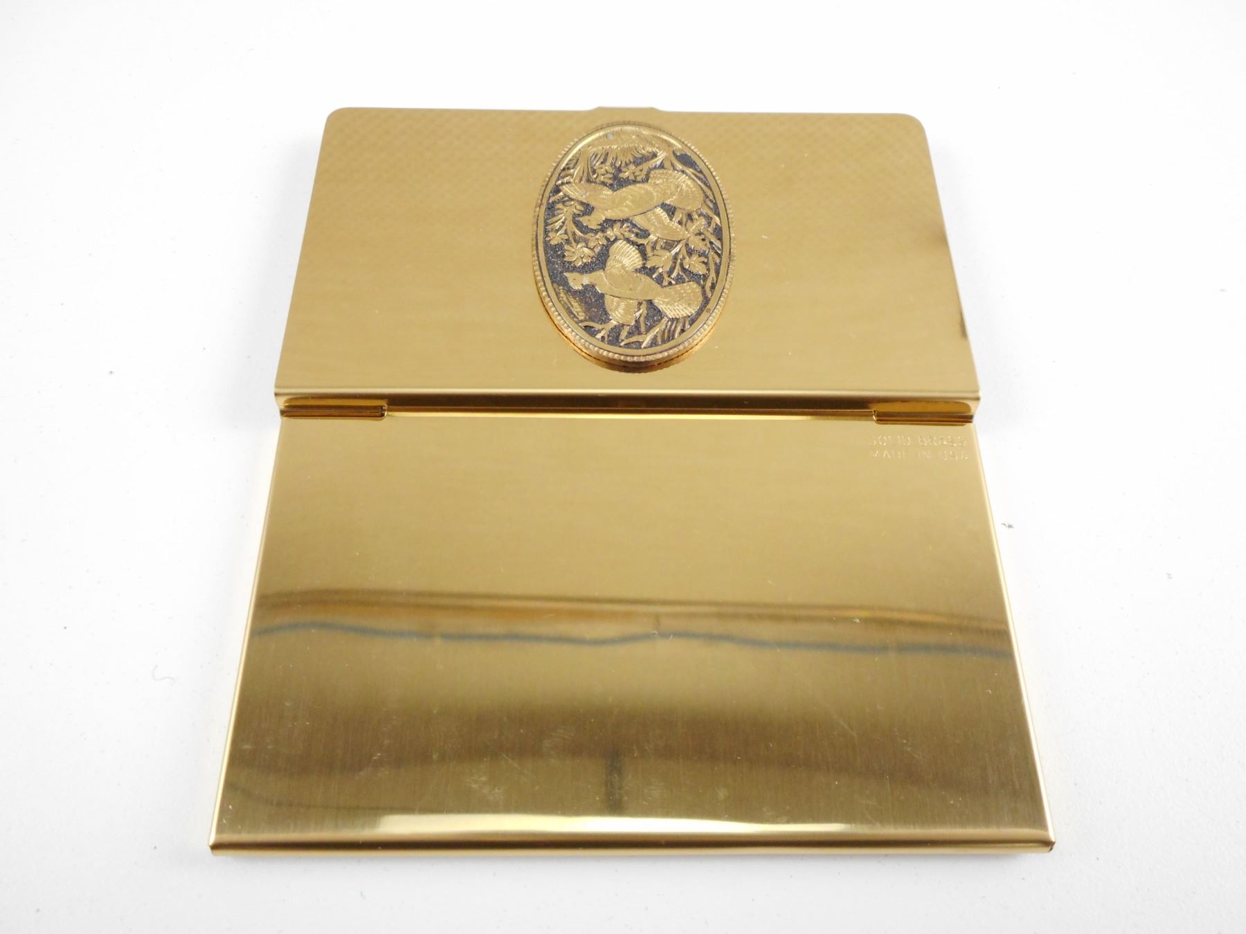 Lot 1062 SOLID BRASS BUISNESS CARD HOLDER WITH ENGRAVED ANIMAL. AND IN WOODEN BOX